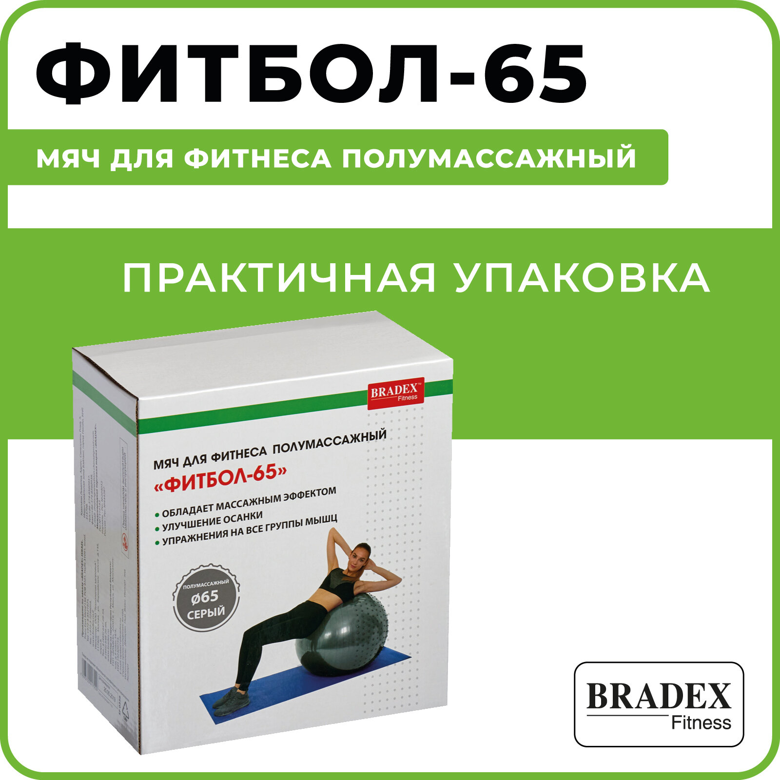 BRADEX Мяч для фитнеса, полумассажный «ФИТБОЛ-65», BRADEX