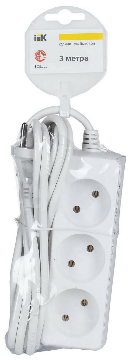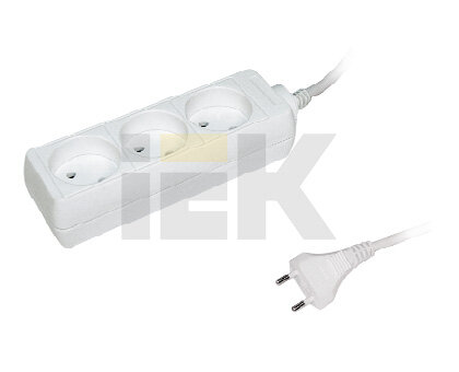 Удлинитель 3-местный 3м 2P белый 10А (ПВС 2х0,75) ИЭК