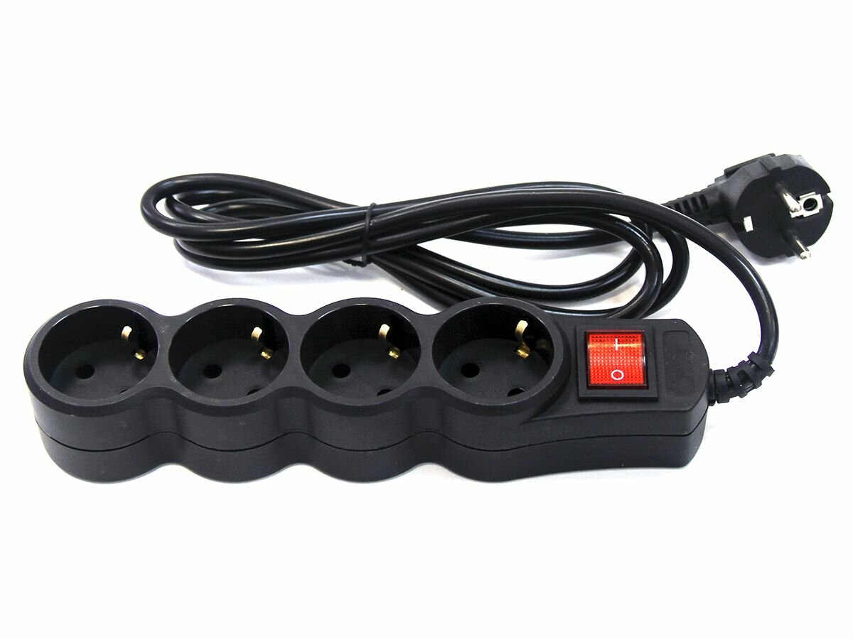 Сетевой фильтр 5bites SP4B-150 4S, 4 розетки, 5 м, 10 А, 3х0.75 мм2, с выкл., черный