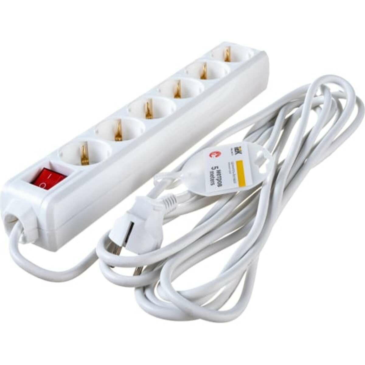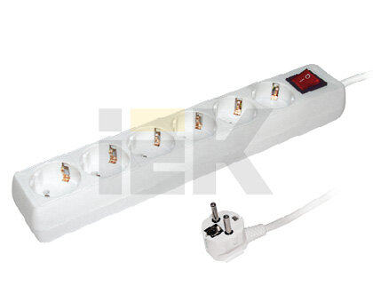 Удлинитель IEK У06К-выключатель, 6 мест, 2Р+PЕ, 5 метров, 3х1мм2, 16А/250 Wyp10-16-06-05-zk-n .