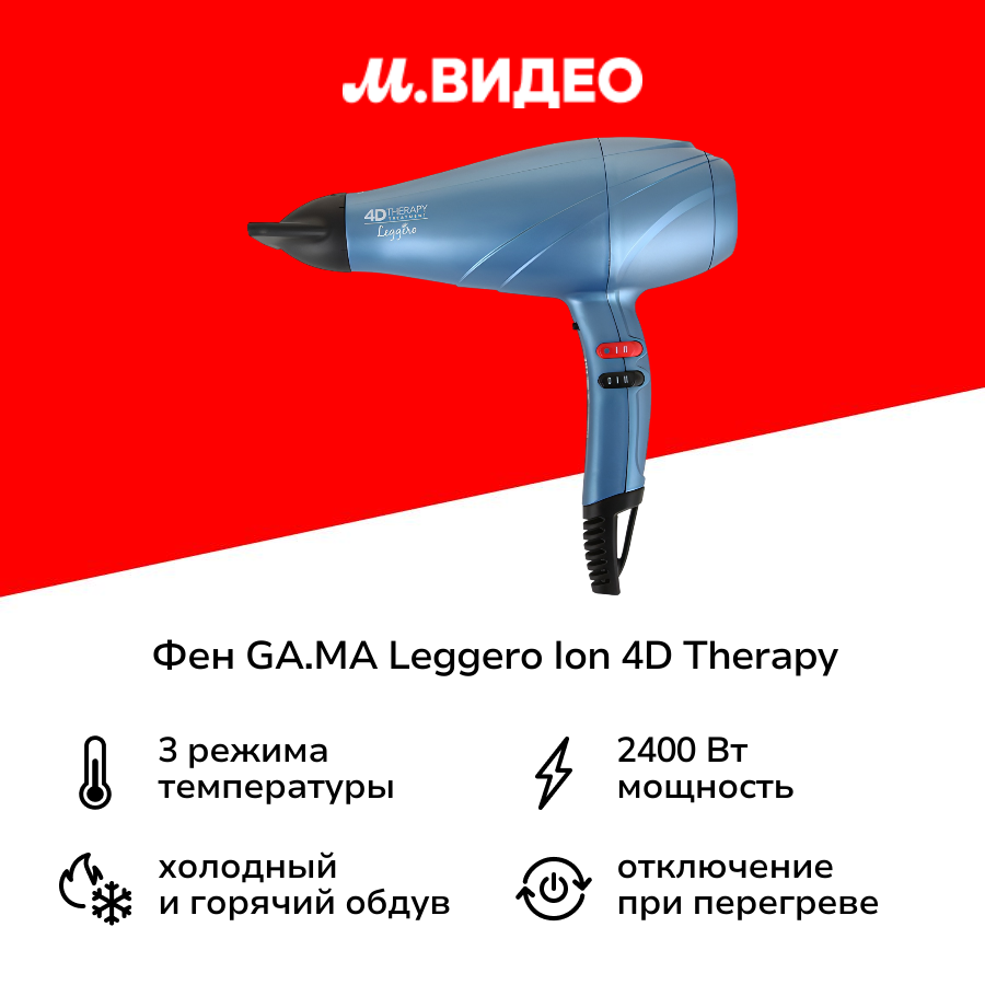 Ниже Вы можете прочитать отзывы на Фен GA.MA LEGGERO ION 4D THERAPY, ознакомится с подробными характеристиками, посмотреть интересные обзоры и фотографии на Фен GA.MA LEGGERO ION 4D THERAPY.