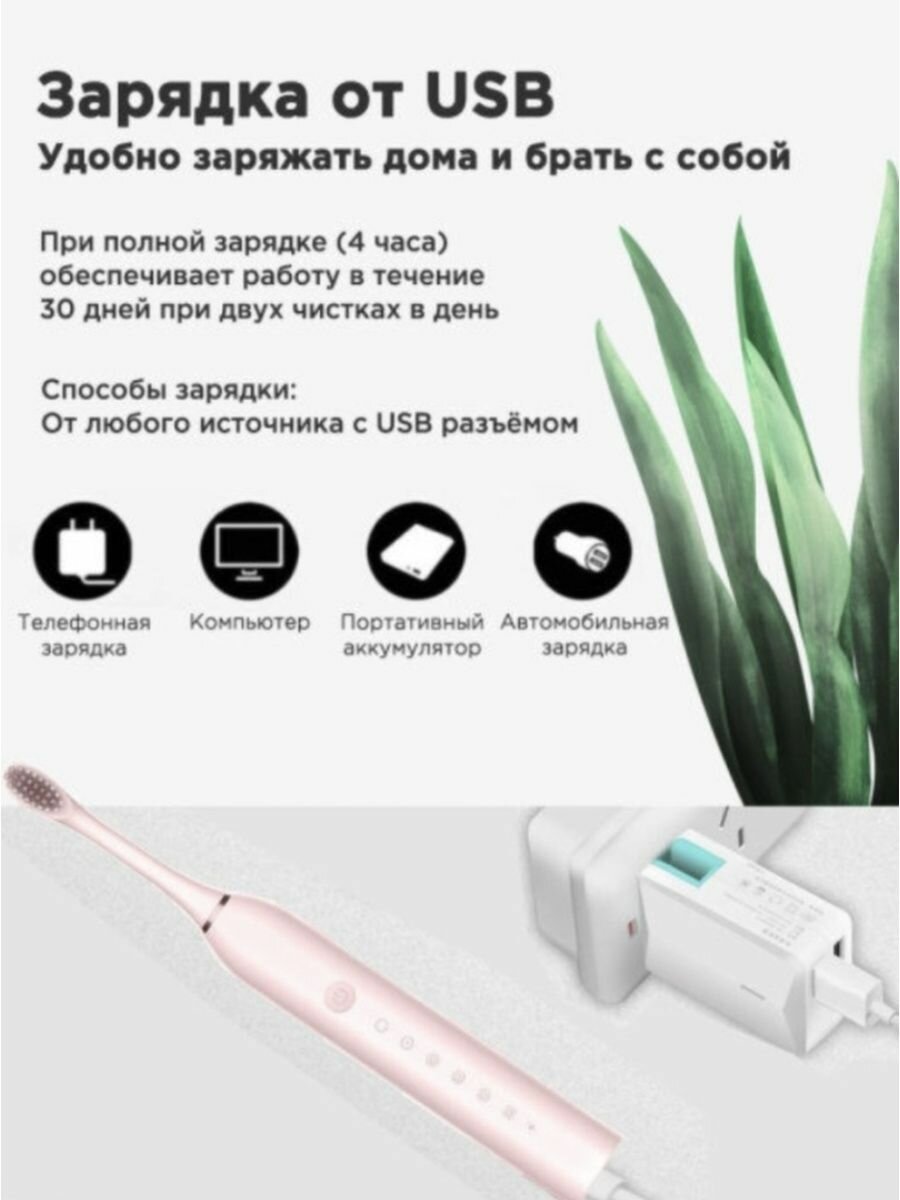 Электрическая зубная щетка SONIC TOOTHBRUSH X-3 / розовая щётка / зубная щётка