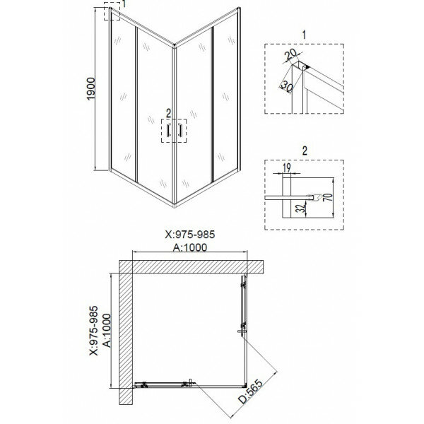 Душевое ограждение NG- 6609-08 (100*100*190) квадрат, двери раздвижные, 1 место