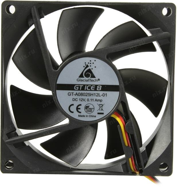 Вентилятор Glacialtech GT ICE 8 80x80x25mm 3-pin 4-pin (Molex)21dB 68gr Ret CF-80250HD0AC0001 .