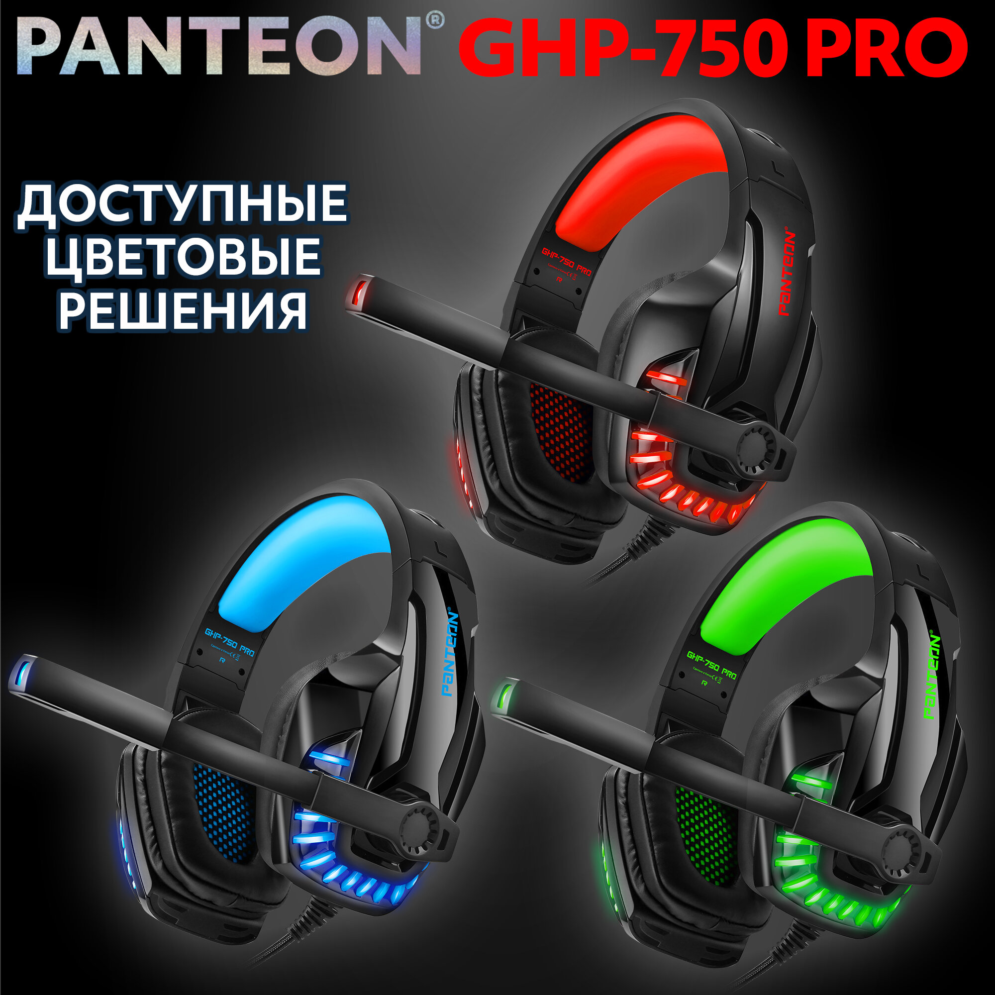 Игровые наушники с микрофоном JETACCESS PANTEON GHP-750 PRO с LED-подсветкой, объёмным звучанием VIRTUAL SURROUND SOUND 7.1 и виброоткликом