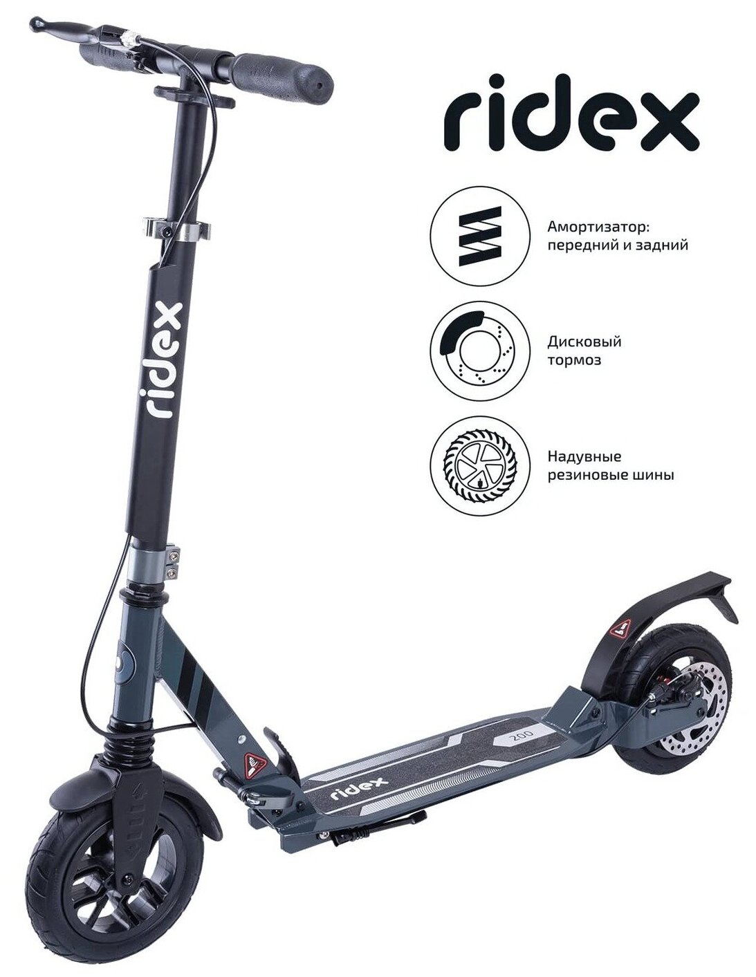 Купить Самокат Ridex Route городской 2-кол. черный/серый (УТ-00018400)