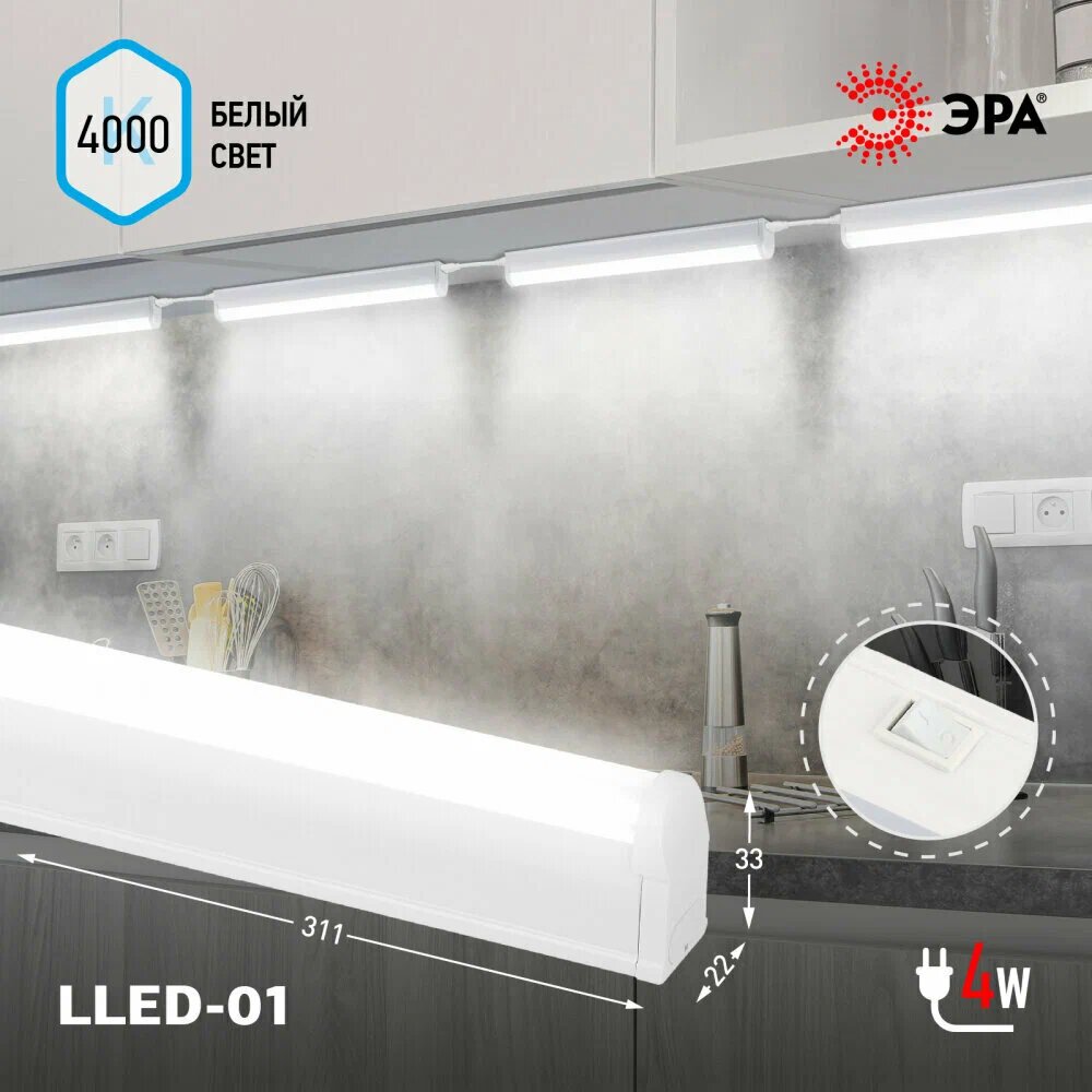 | Дополнительная информация | срок службы или срок годности: 30000 часов; температура эксплуатации: +5...+40 °С; комплектация: светильник с выключателем, сетевой шнур с вилкой длиной 1 м, соединительный элемент для гибкого соединения 15 см, жесткий соединитель для соединения встык, набор крепежей; максимальное количество светильников для последовательного подключения, не более 3 шт. |