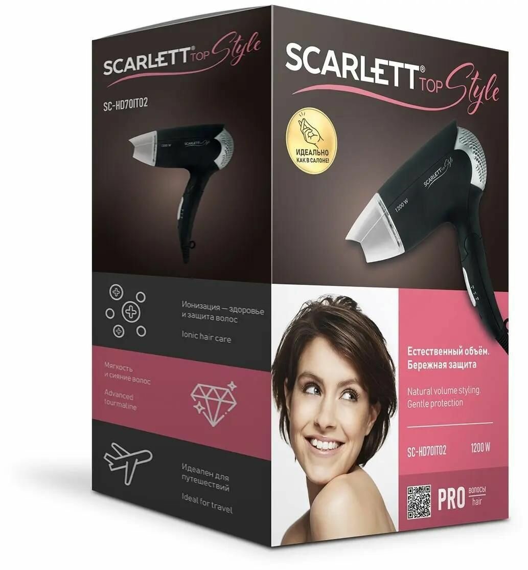 Фен Scarlett SC-HD70IT02, 1200Вт, черный
