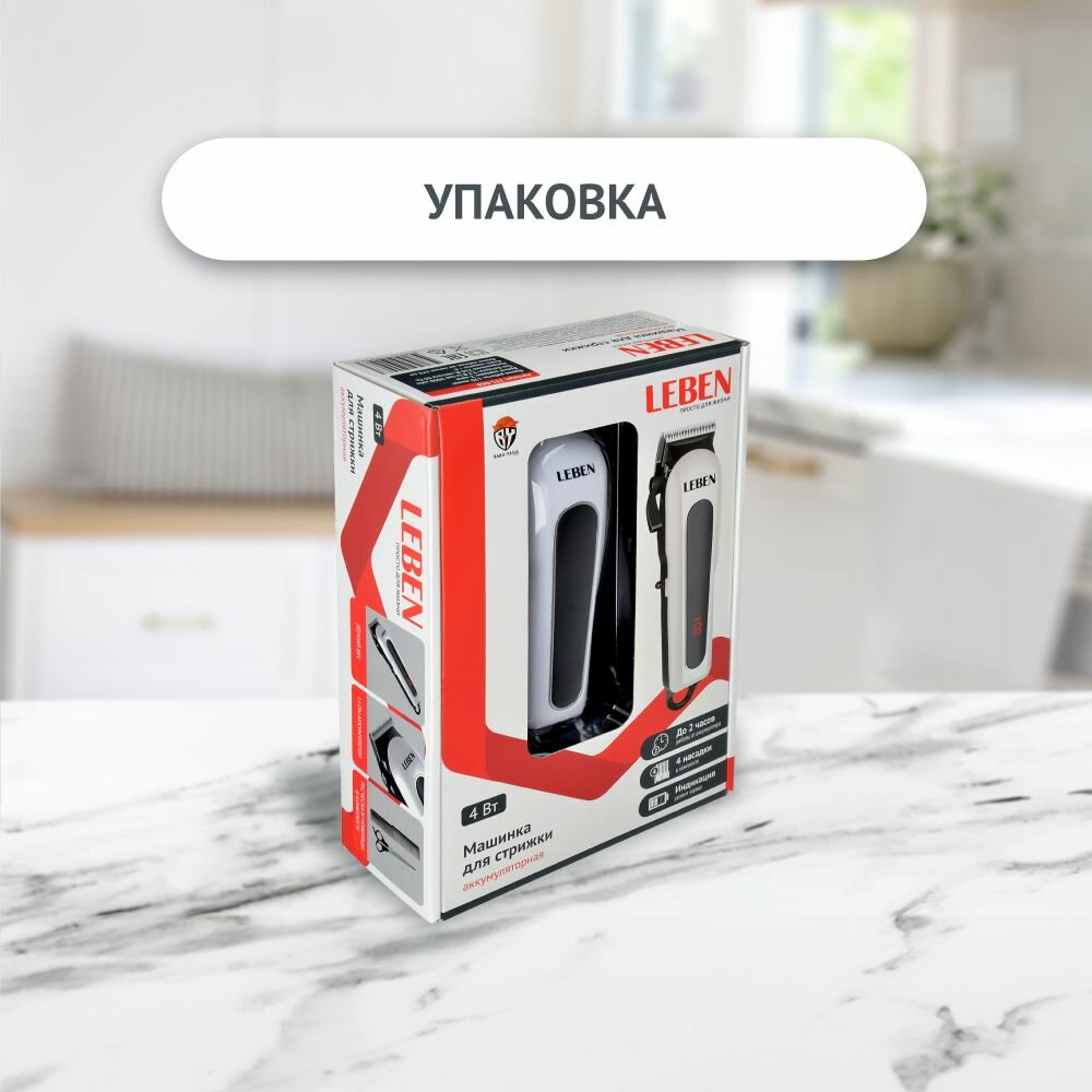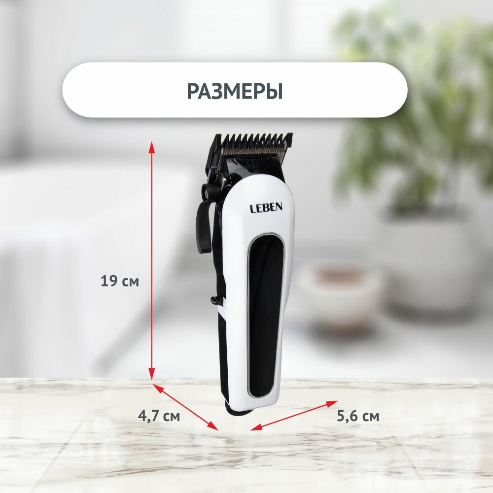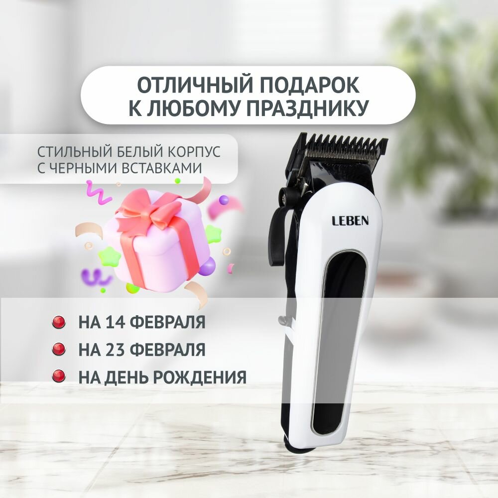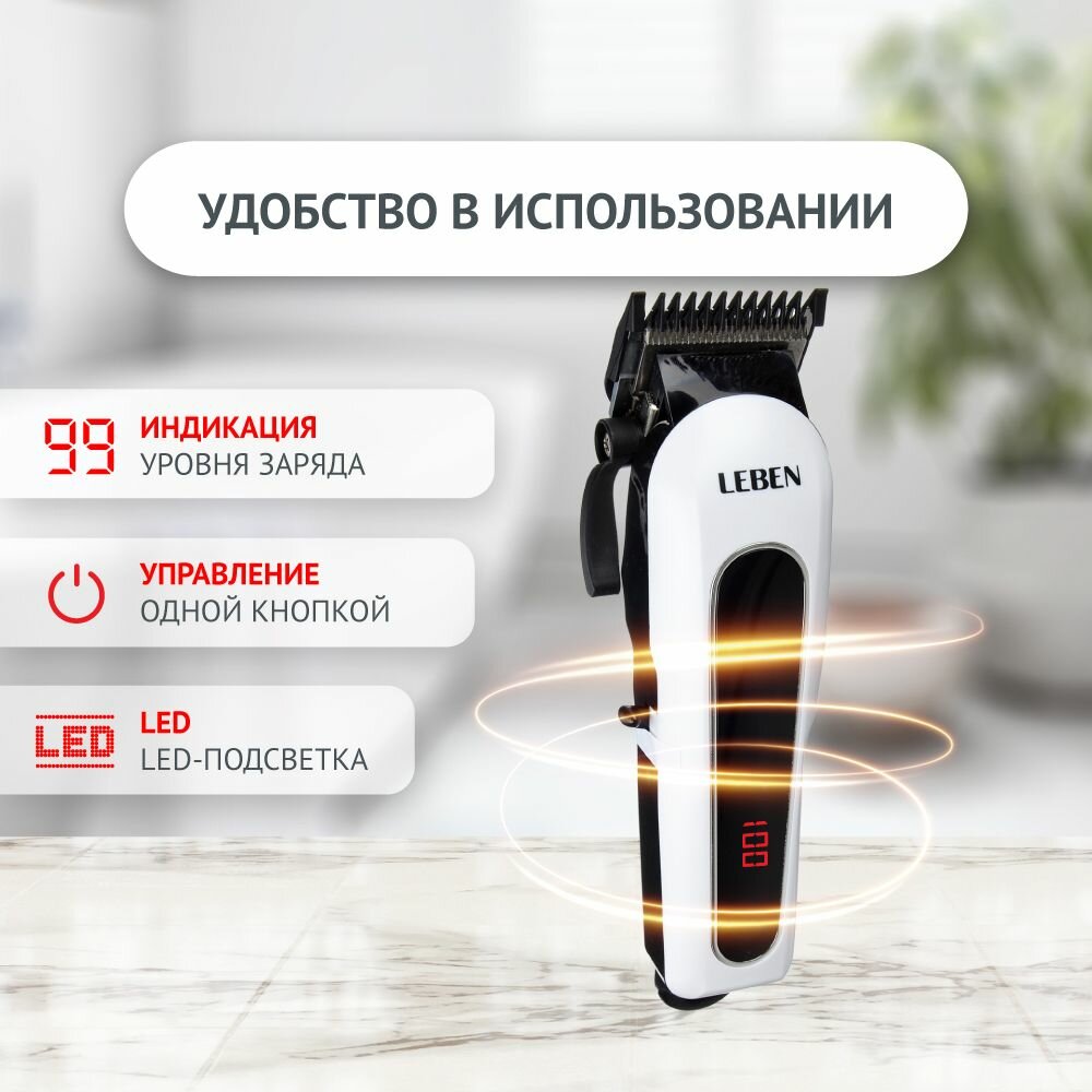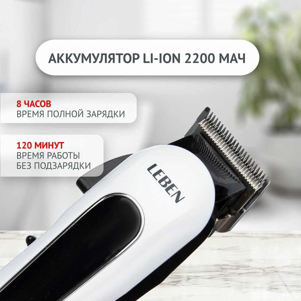 LEBEN Машинка для стрижки аккумуляторная, 3,7 В Li-Ion 2200 мАч, 220 В, 50Гц, 5 В, 0.8 А 4 Вт 251-068