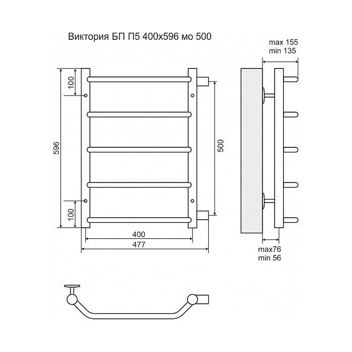 Виктория (с боковым подключением) полотенцесушитель TERMINUS (477 мм / 596 мм / 500 мм)