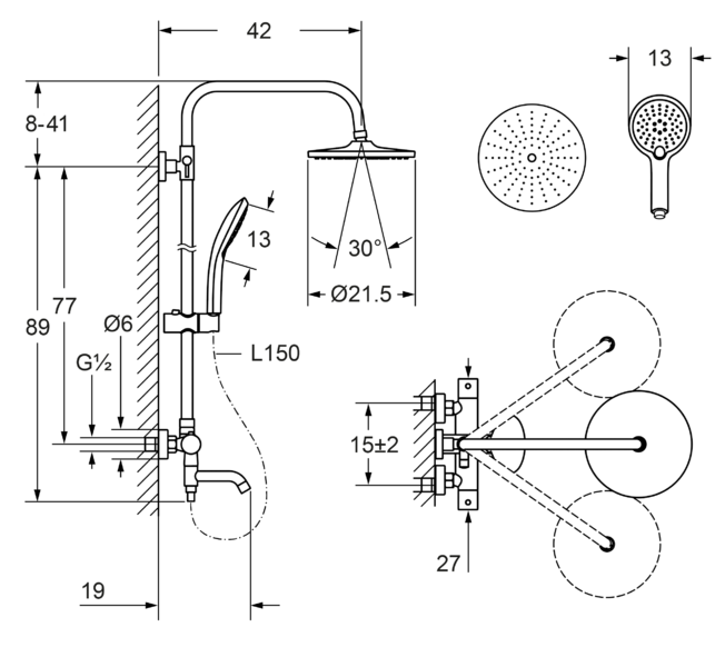 | Диаметр верхнего душа | 215 мм |
