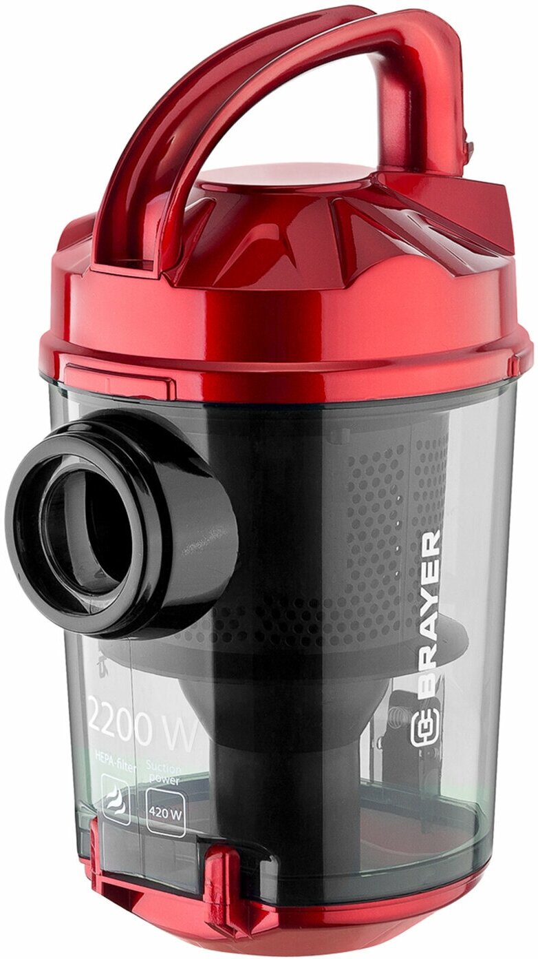 Пылесос BRAYER BR4202 с контейнером "циклон", 2200 Вт, мощность всасывания 420 Вт, черный/бордовый В комплекте: 1шт.