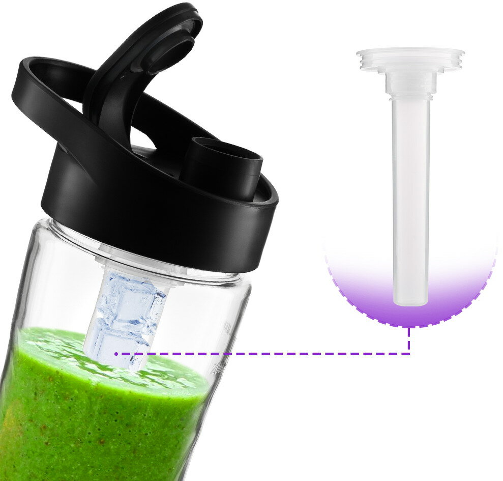 У большой колбы достаточный объём, чтобы сделать смузи на три стакана. Очень удобная бутылка для того, чтобы взять что-то с собой. Порадовало наличие охлаждающей колбы, в жару самое то. Очень мощный , смузи делает очень быстро и не остаётся комочков. Справляется со льдом и замороженными фруктами. Внизу есть присоски что позволяет блендеру надёжно и крепко стоять на поверхности. |