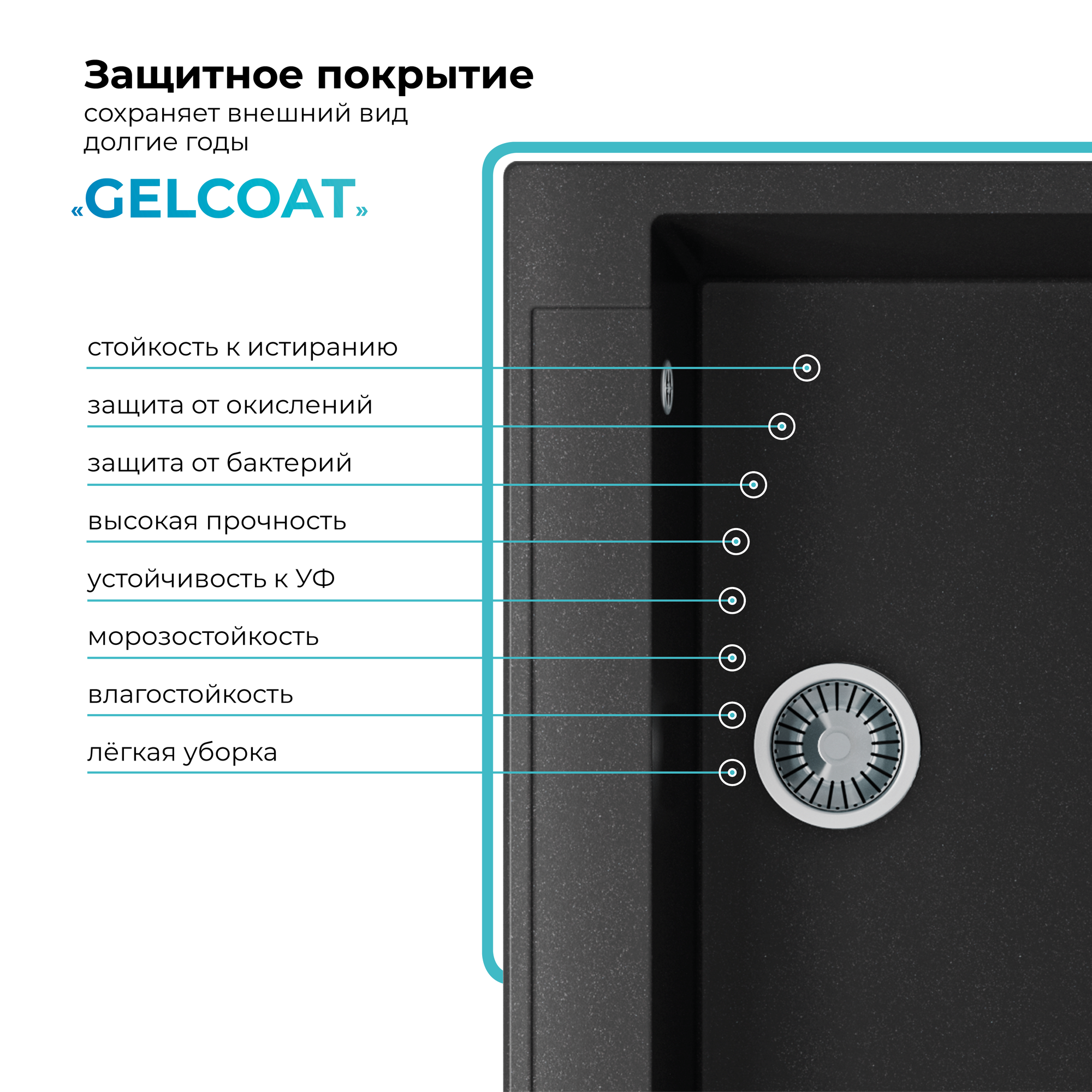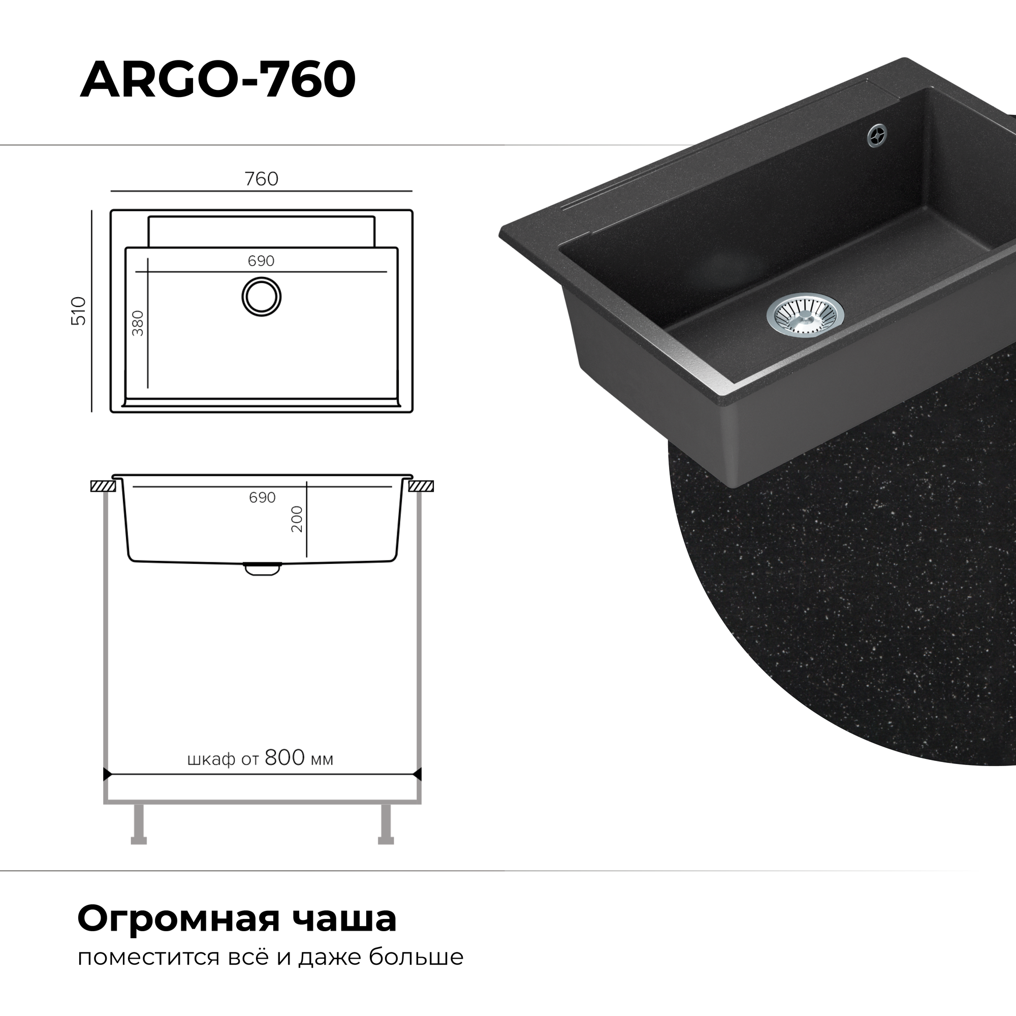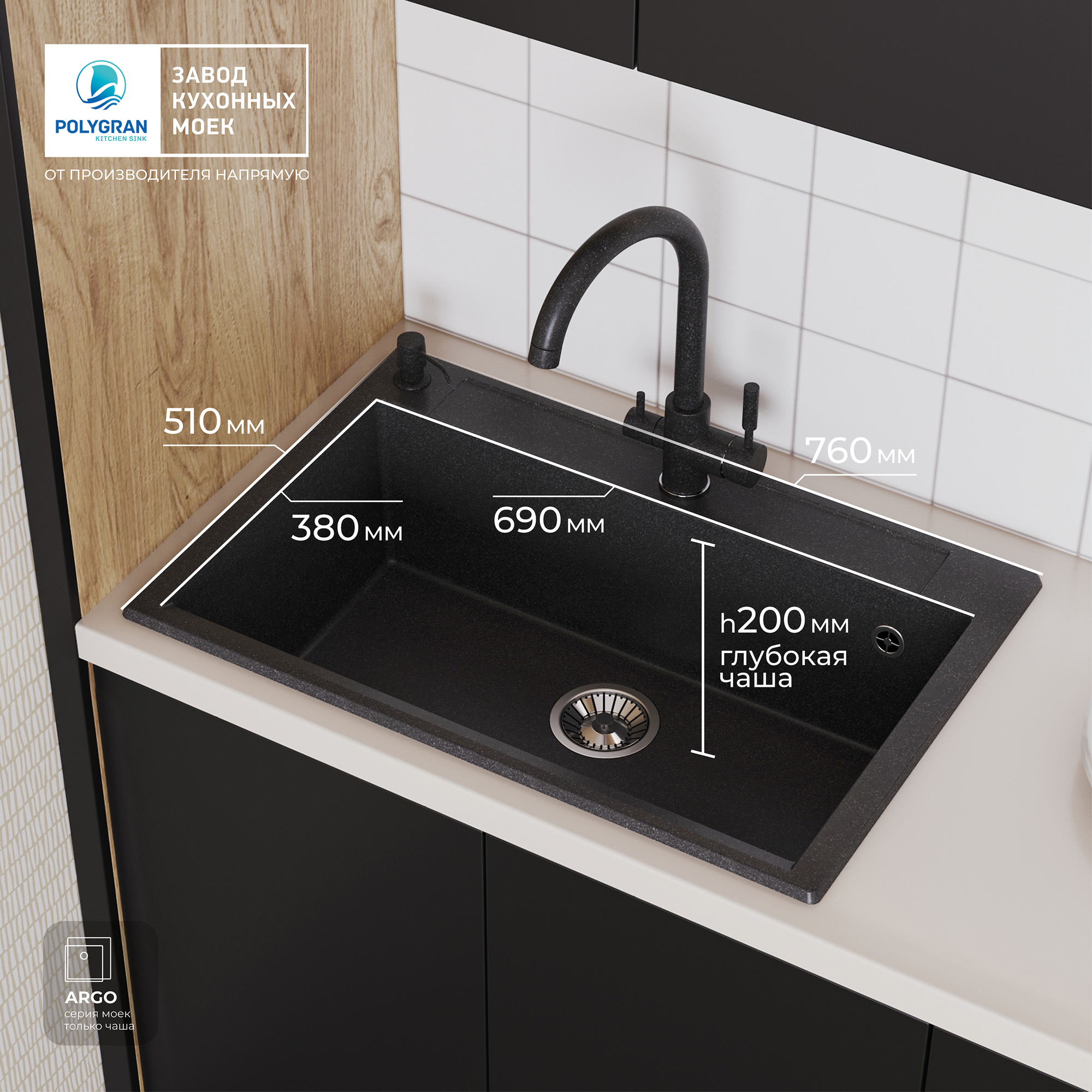 Polygran ARGO-760, мойка, мрамор, черный 16