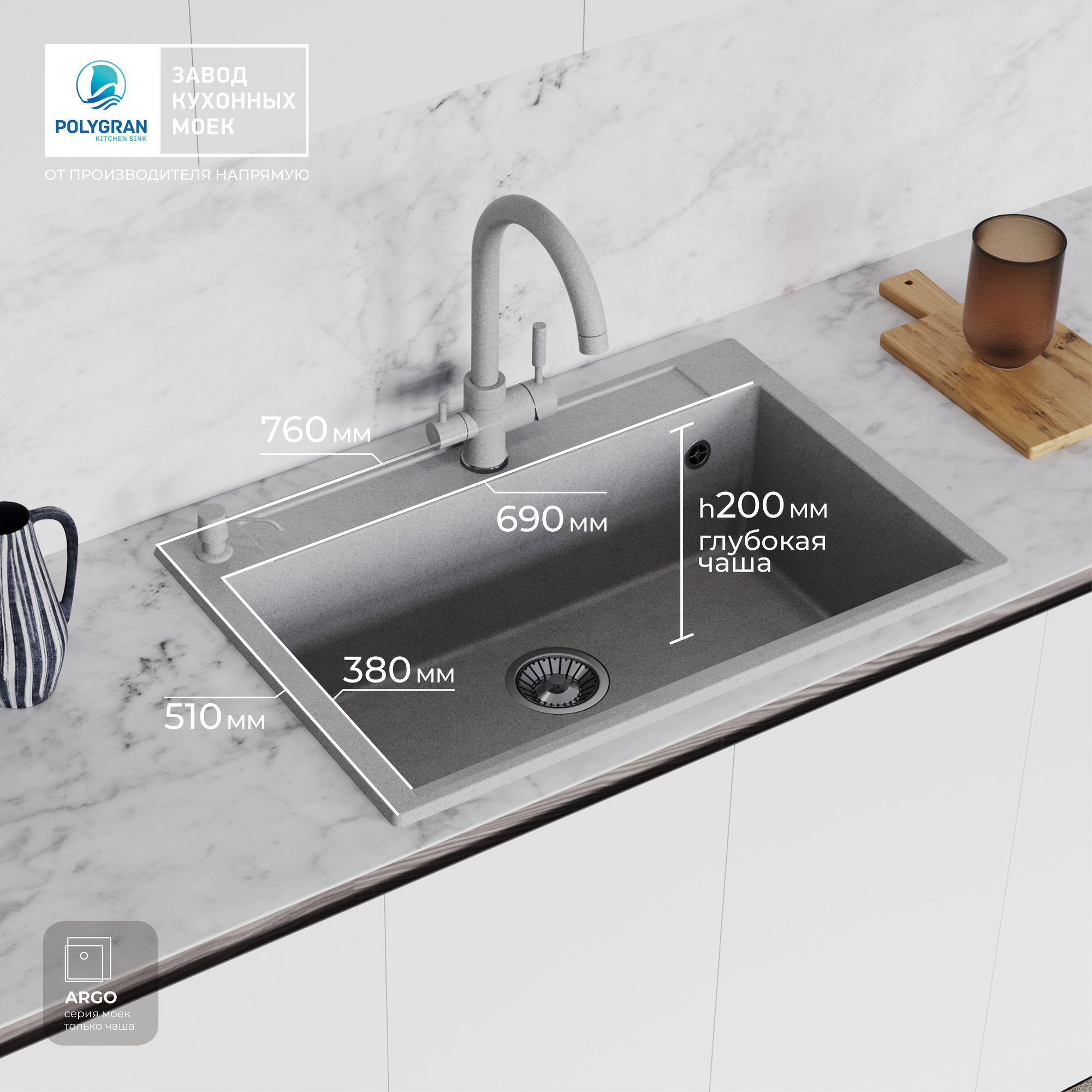 СохранитьКухонная мойка Polygran Argo 760 №14 серый (575875) интересное: