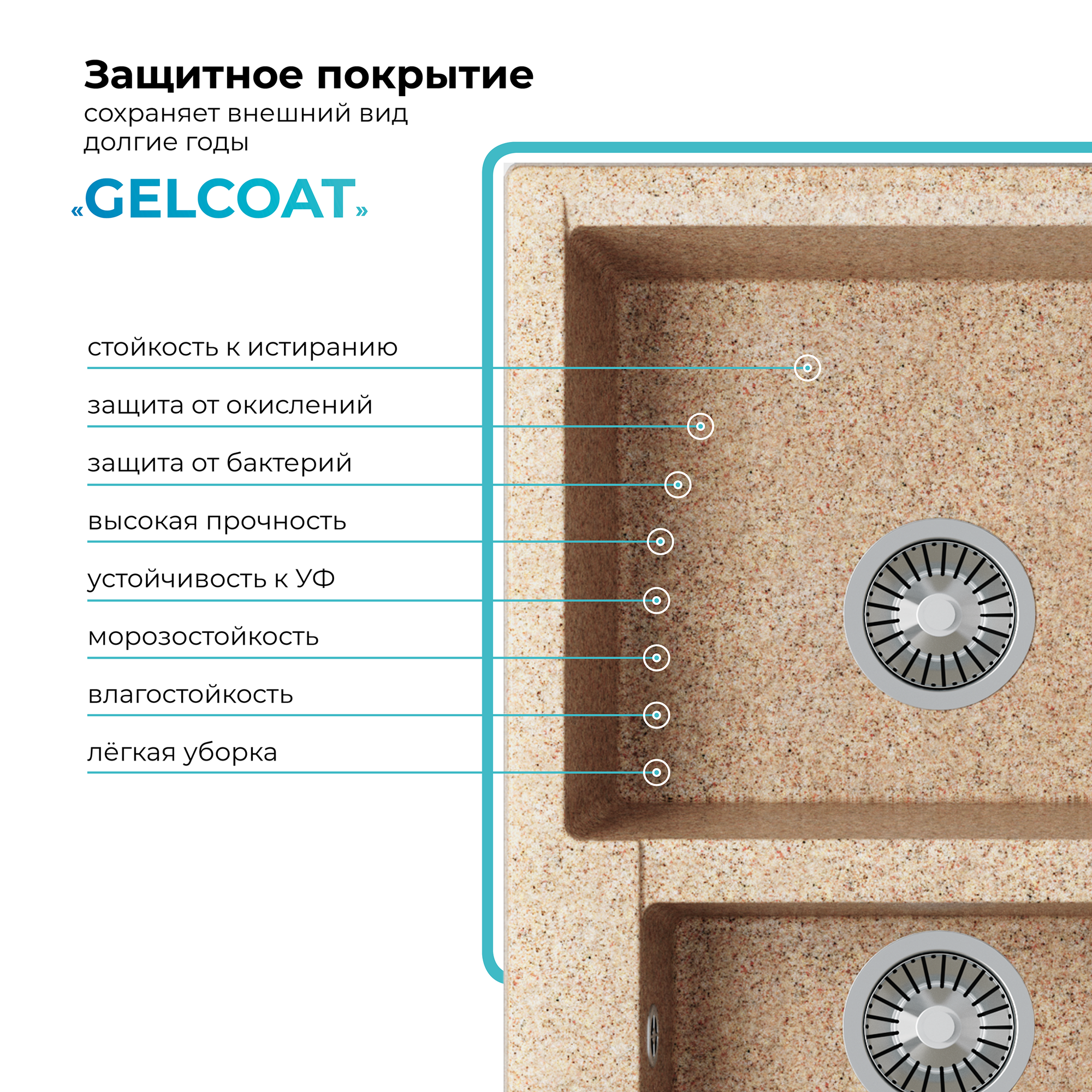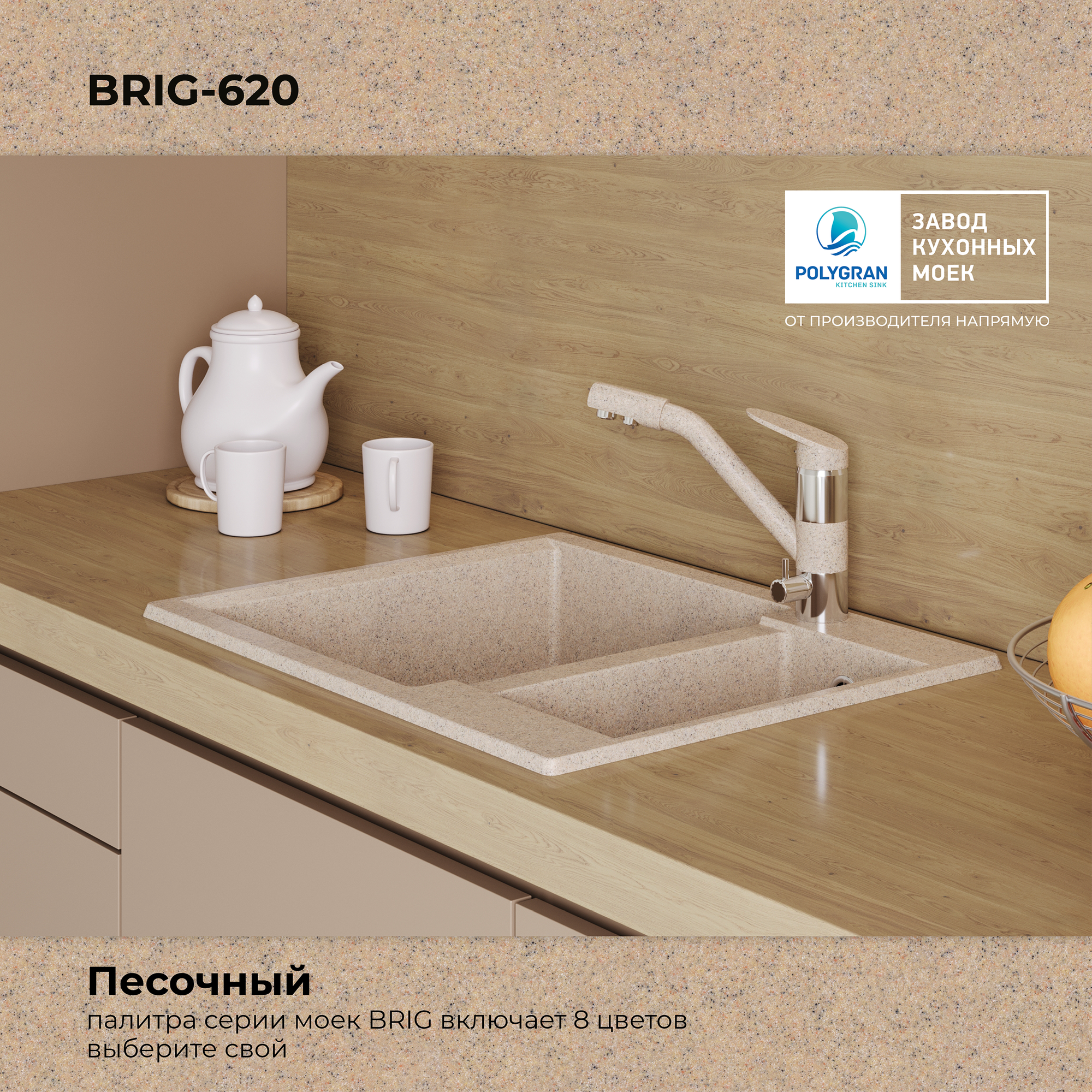 Мойки Polygran BRIG-620, мойка, мрамор, песочный 302