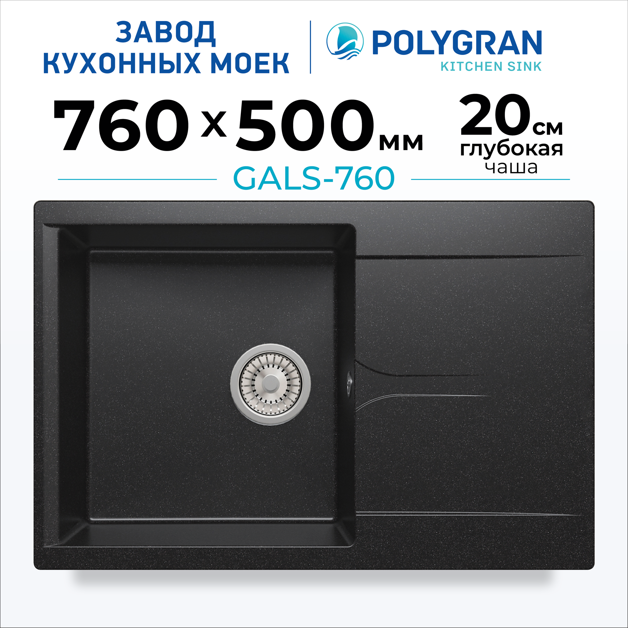 Мойка для кухни POLYGRAN Gals-760 каменная с крылом (№16 Черный)