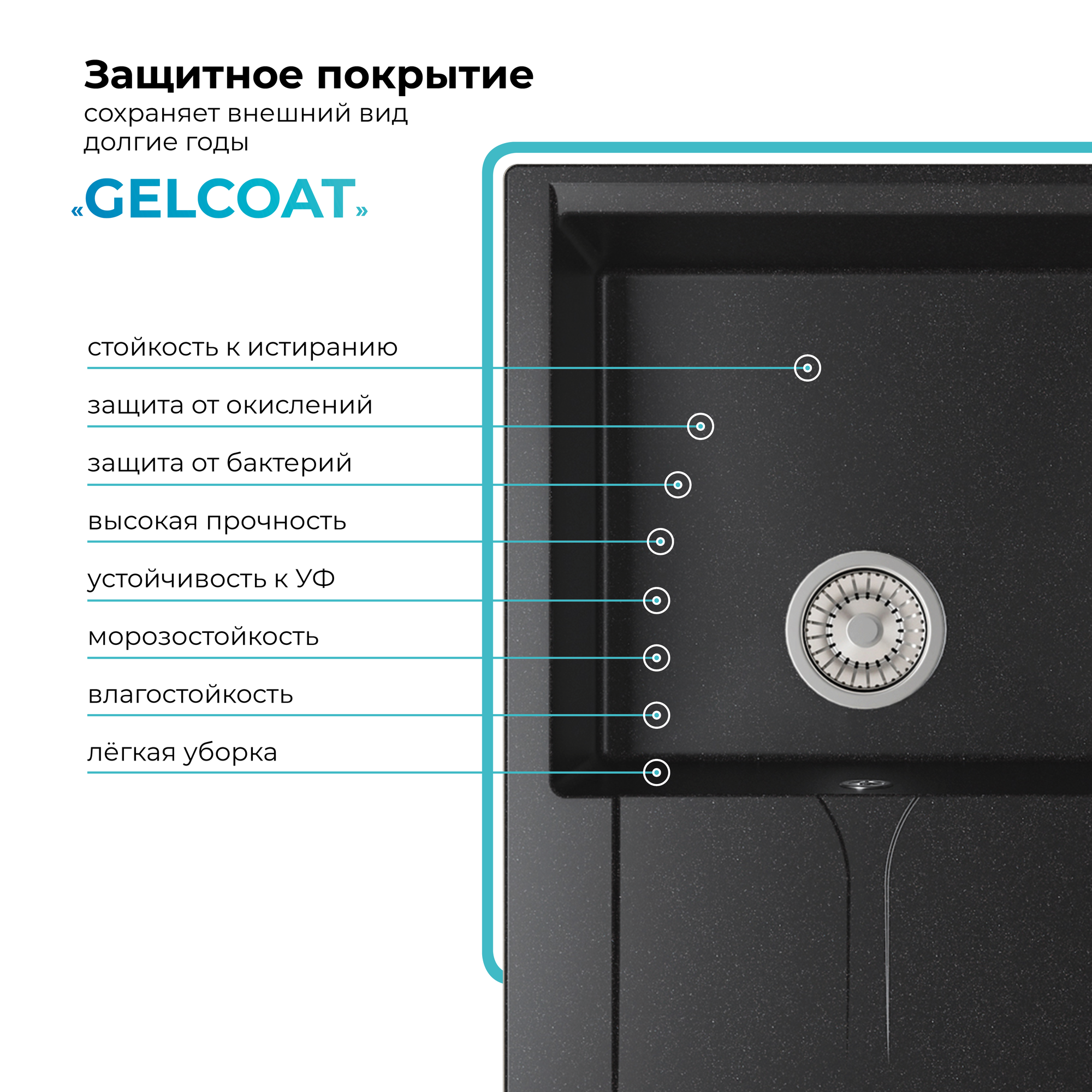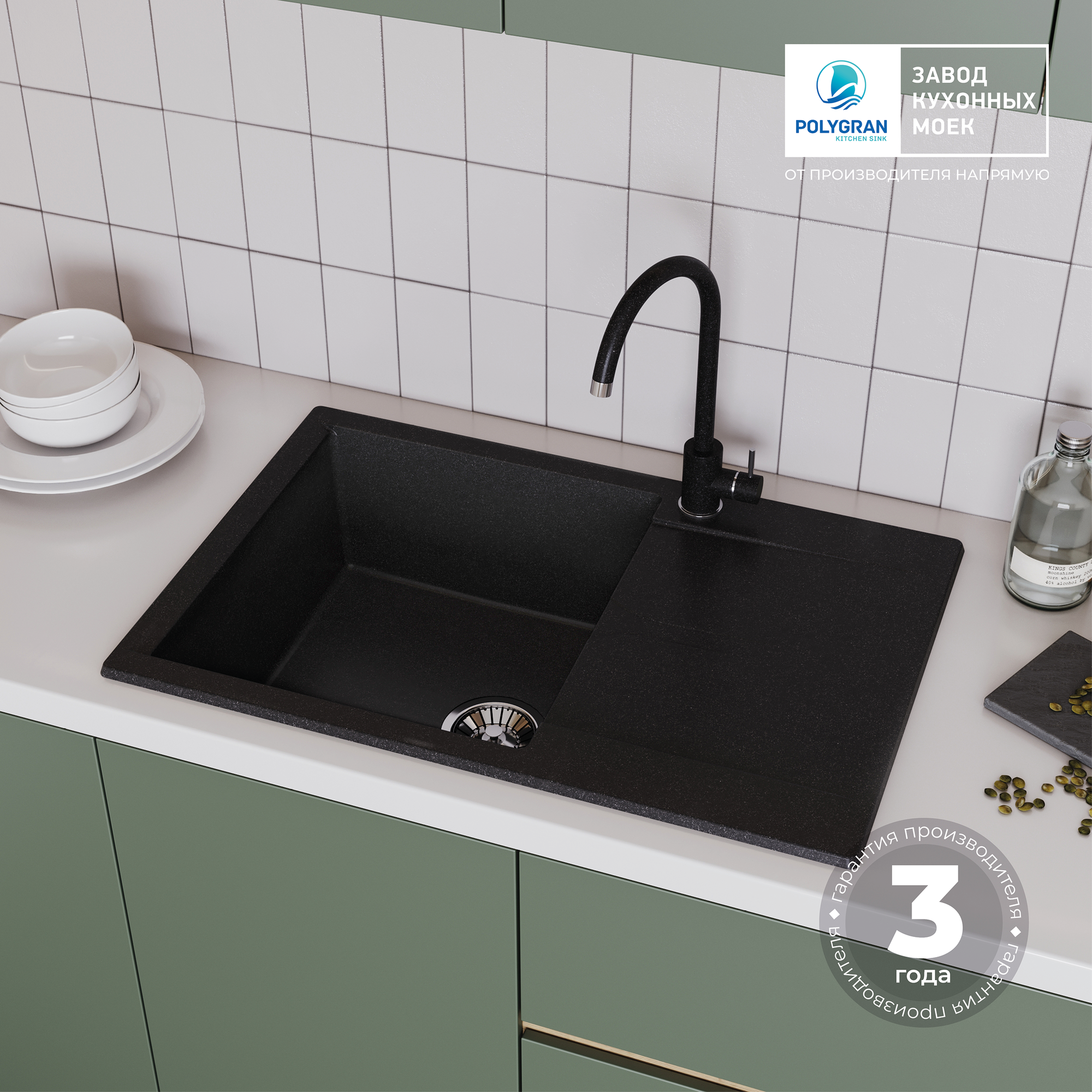 Мойки Polygran GALS-760, мойка, мрамор, черный 16