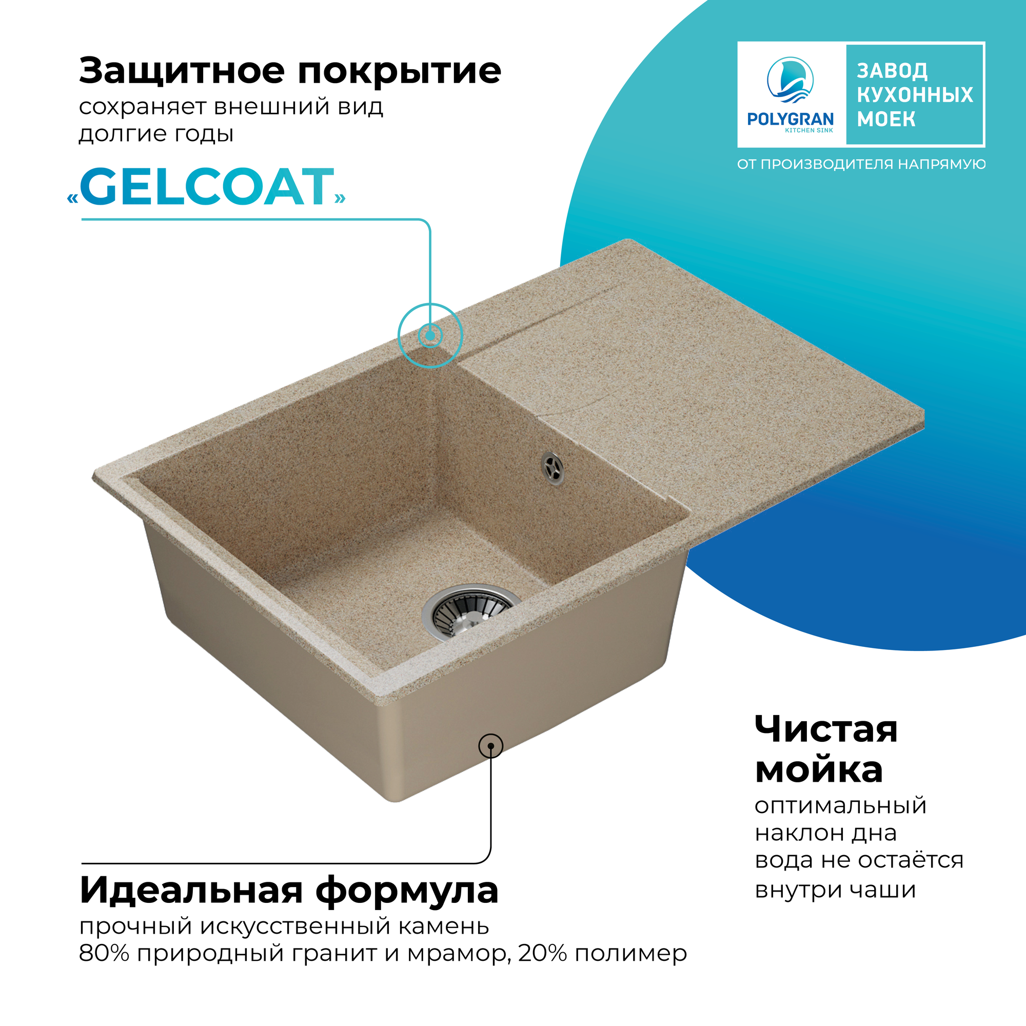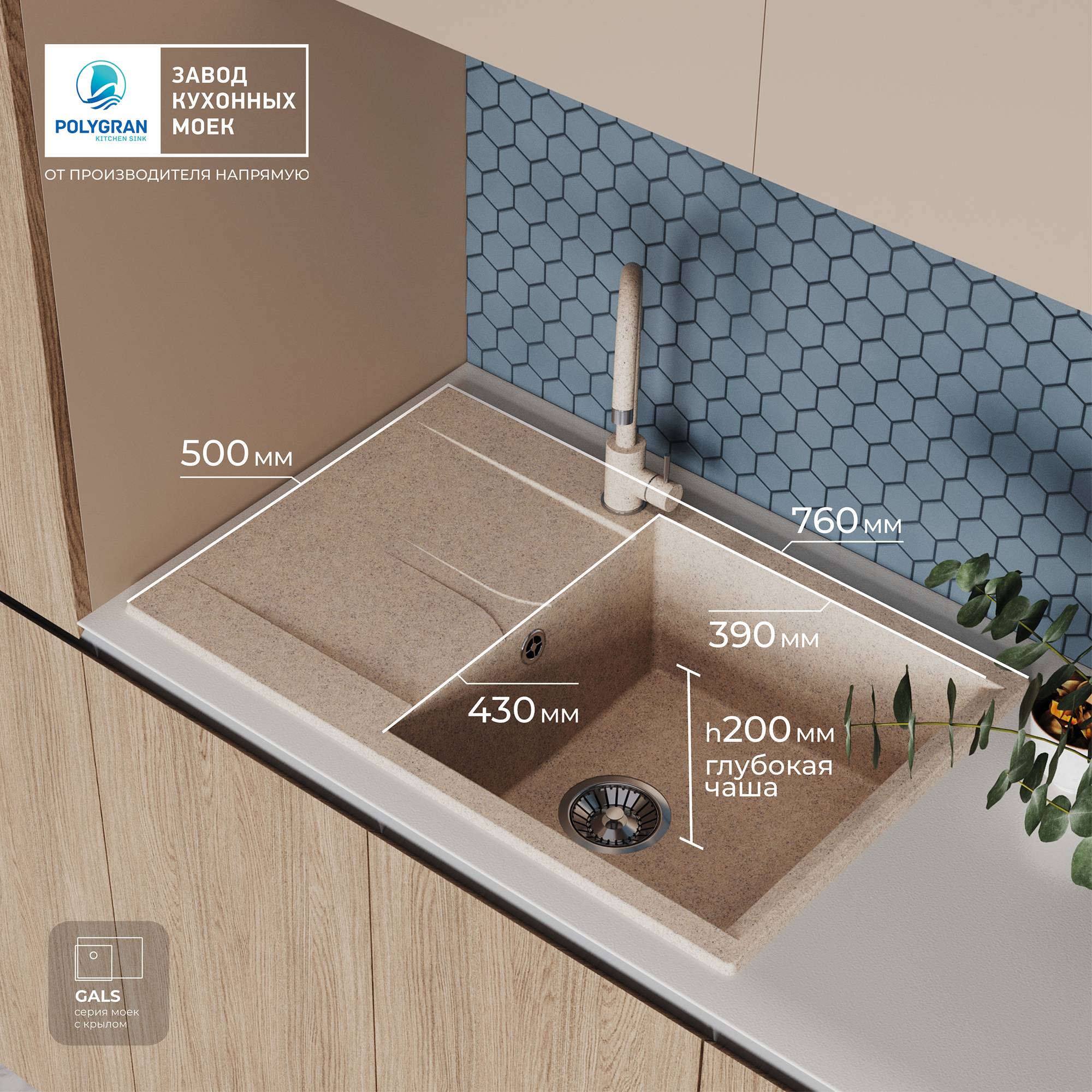 Polygran Мойка кухонная Polygran Gals 760 песочная