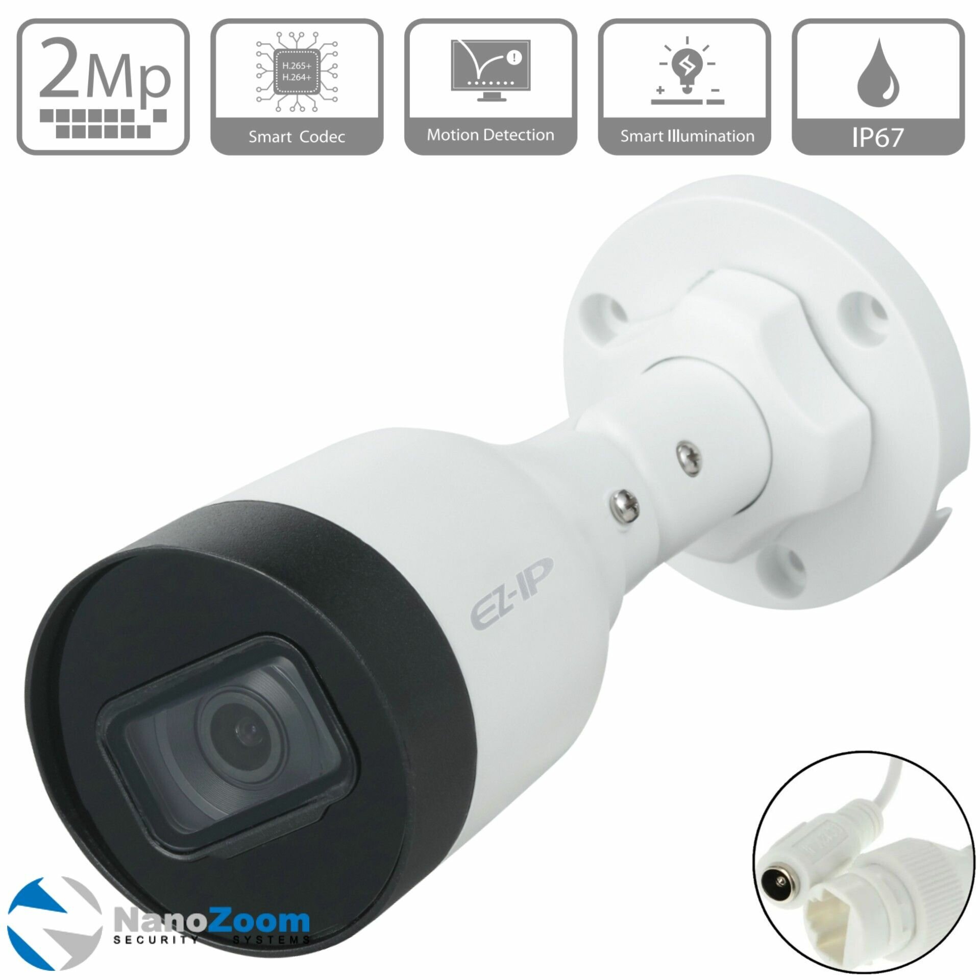 IP-камера EZ-IP IPC-B1B20P 3.6мм, уличная, корпусная, 2Мпикс, 1920x1080, ИК подсветка, POE, белый/черный (EZ-IPC-B1B20P-0360B)