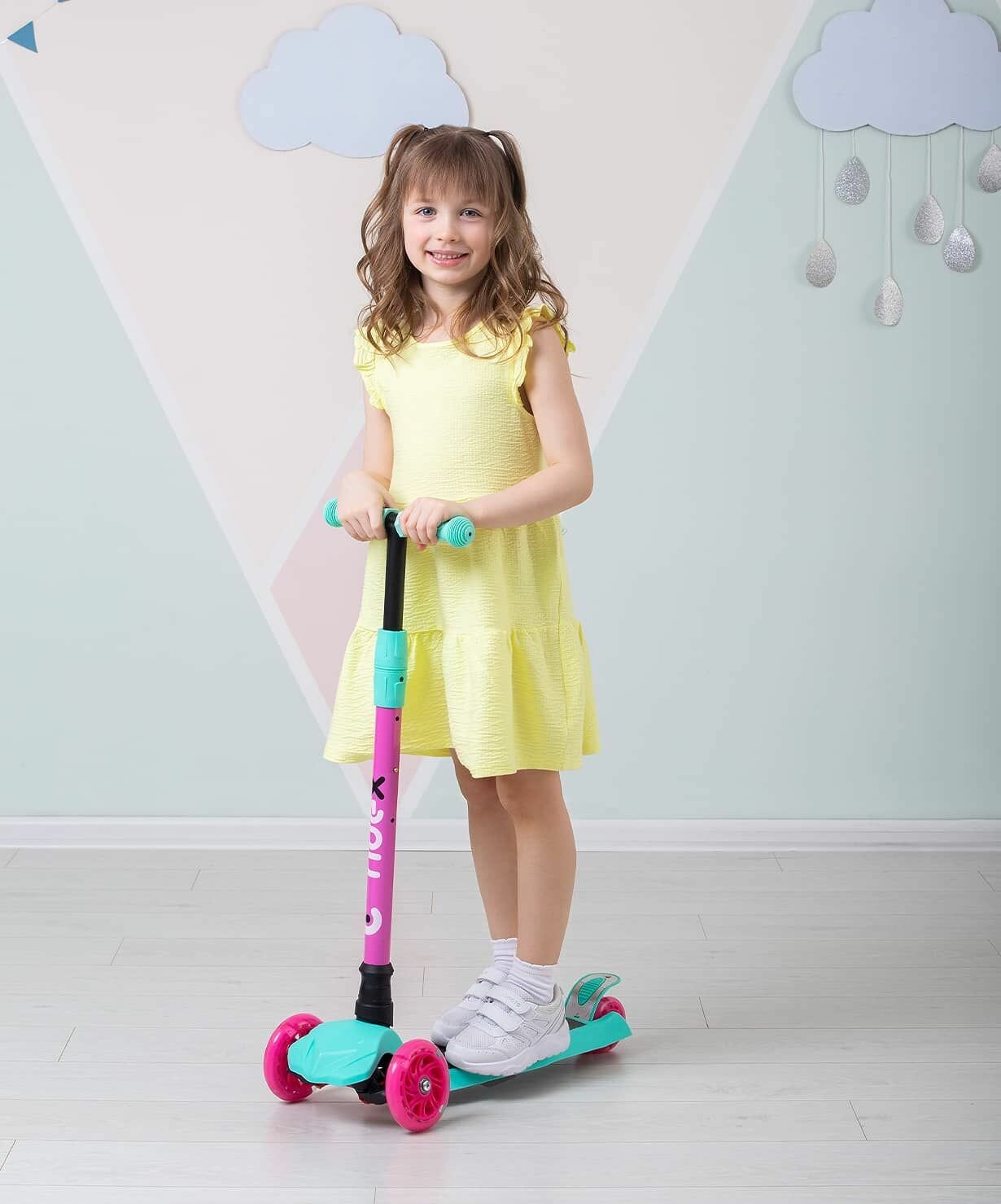 Самокат детский трехколесный COMIRON Yeenot "Зверята", регулируемая складная ручка, светящиеся колеса 110 и 75 мм, нагрузка до 40 кг, розовый / 1 шт.