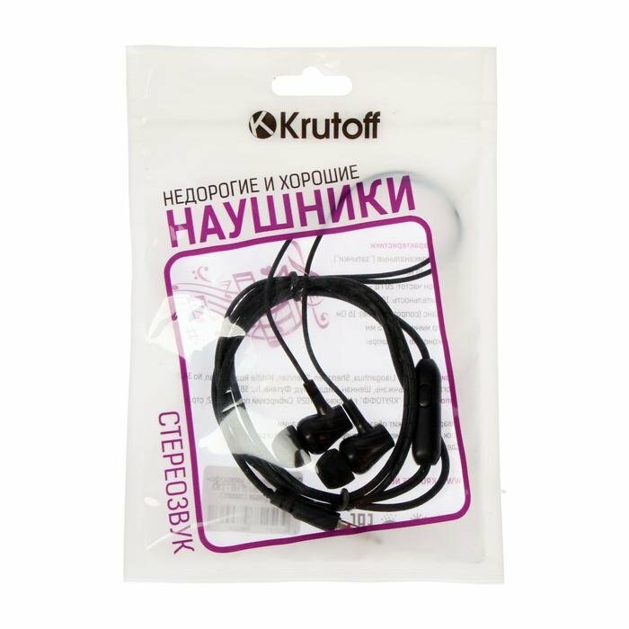 Наушники Krutoff HF-T83, вакуумные, микрофон, 106 дБ, 16 Ом, 1 м, черные