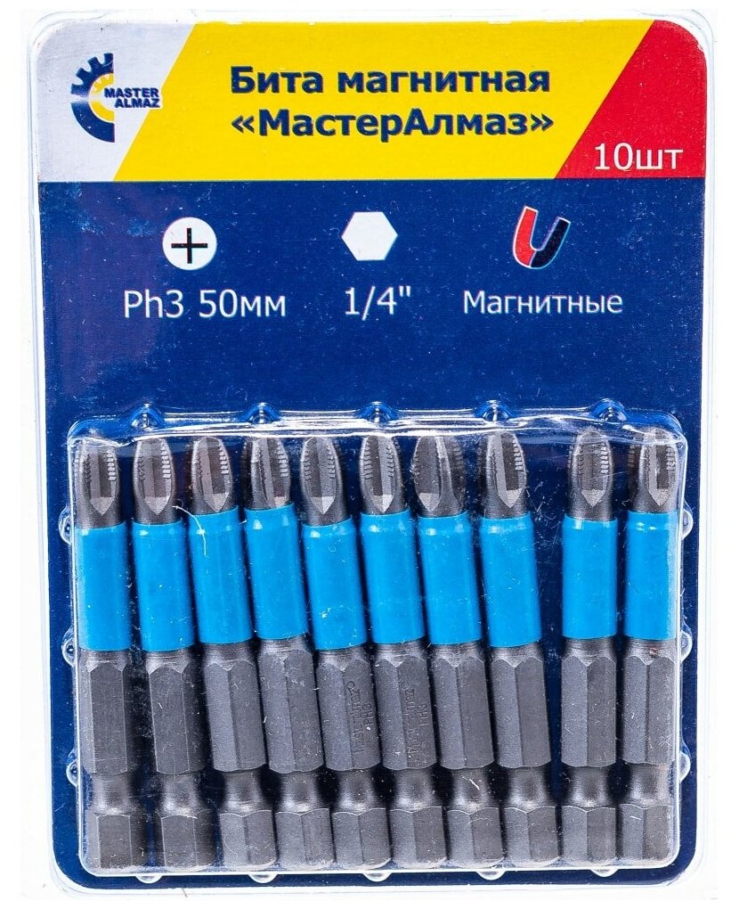 Бита магнитная Philips (10 шт; 50 мм; Ph3; 1/4) МастерАлмаз 10501022 интересное: