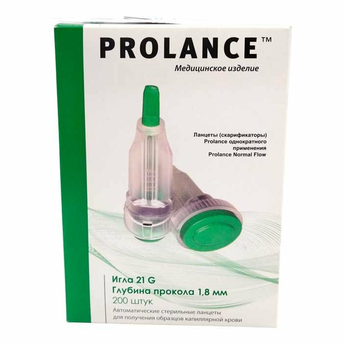 Ланцет Prolance Normal Flow (зелёный)1,8мм, игла 21G 200шт/уп