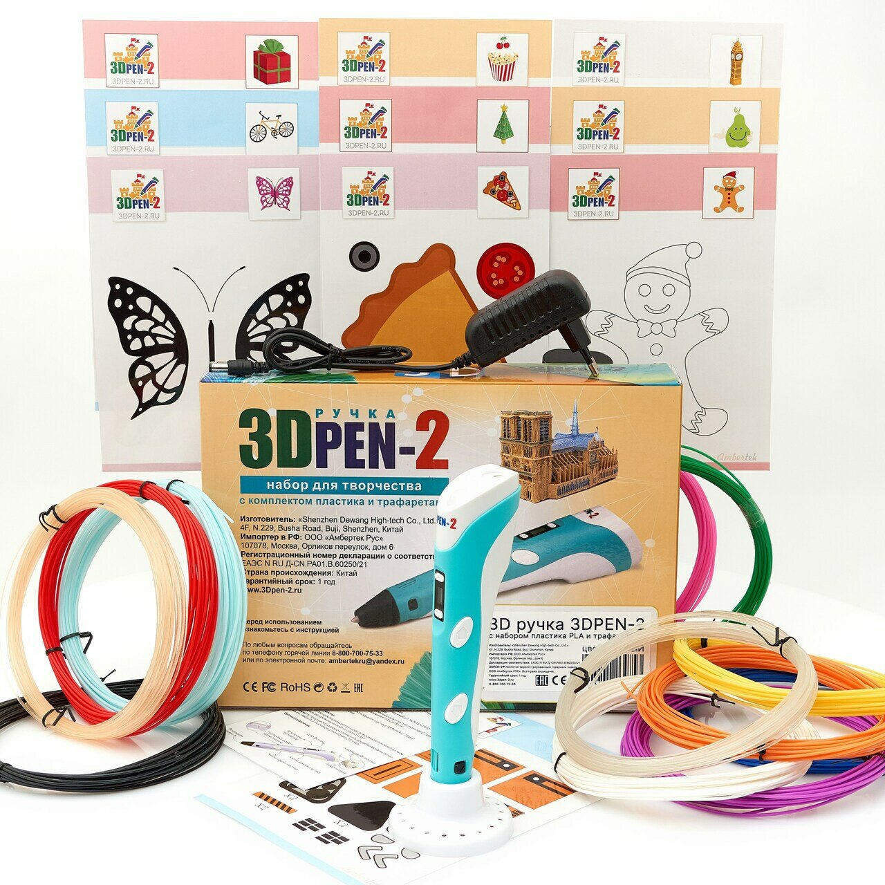 Сохранить3D ручка 3DPEN-2 (цвет: голубой) с набором пластика PLA 10 цветов по 10 метров и набором трафаретов для 3D ручек интересное: