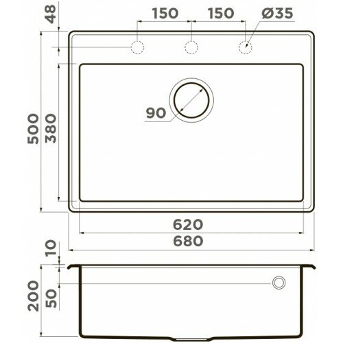Врезная кухонная мойка 68 см, OMOIKIRI Tedori 68, матовое эверест