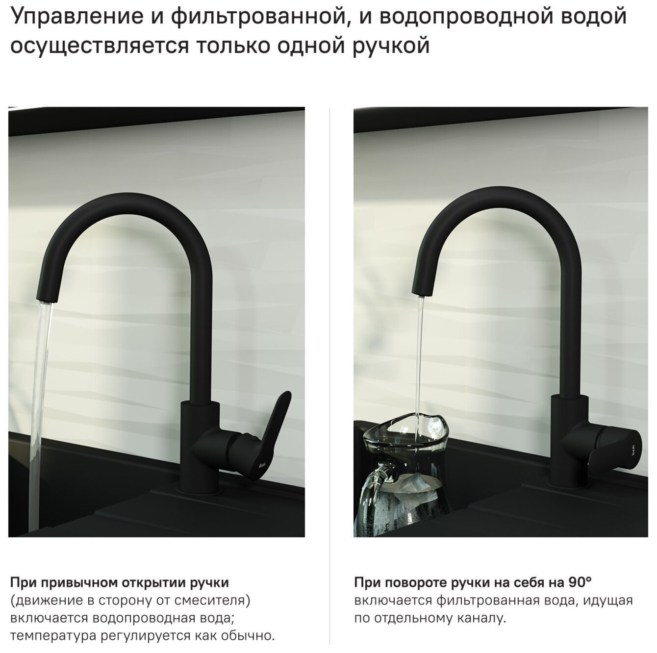 Смеситель для кухни с каналом для фильтрованной воды, черный