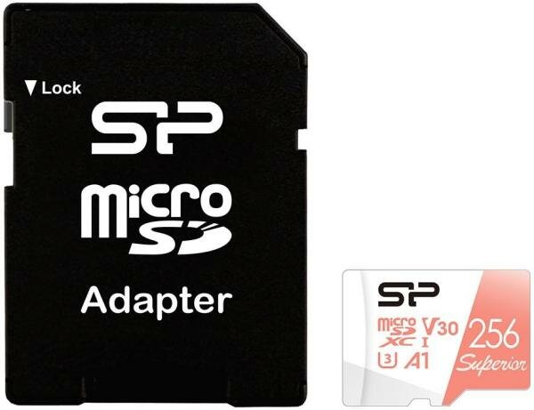 Карта памяти Silicon Power Superior DV3 microSDXC UHS-I Class 10 256GB с адаптером