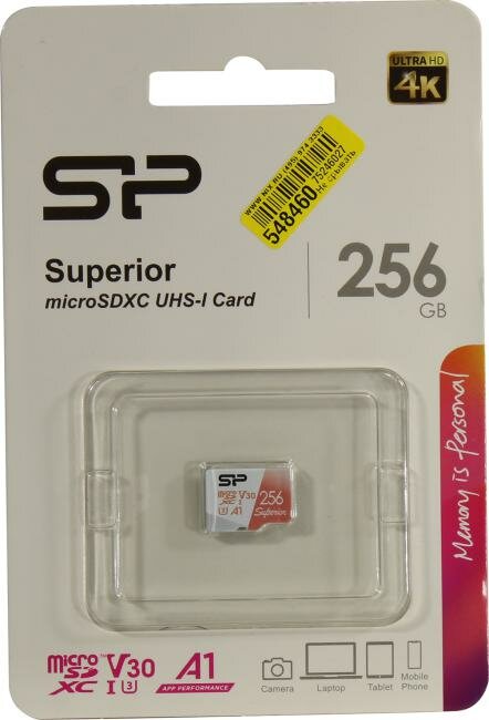 256Gb - Silicon Power Superior A1 MicroSDXC Class 10 Uhs-i U3 Sp256gbstxdv3v20sp с адаптером SD (Ори .