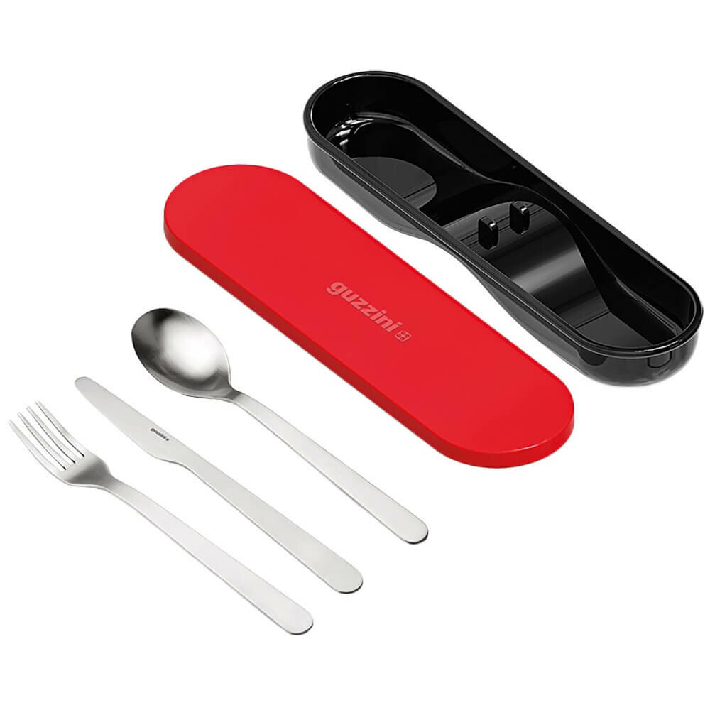 Набор из 3 столовых приборов Guzzini в футляре On the Go красный