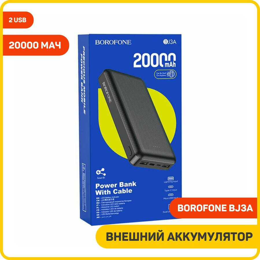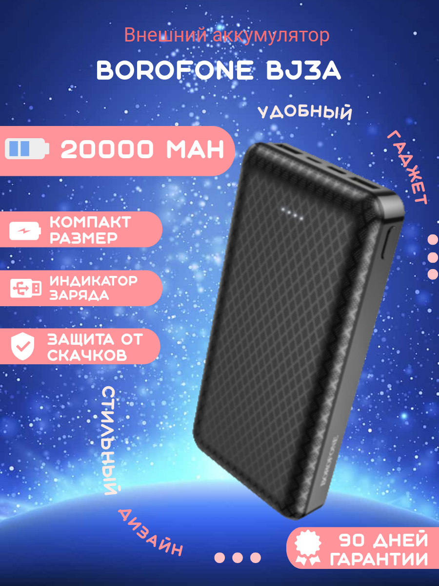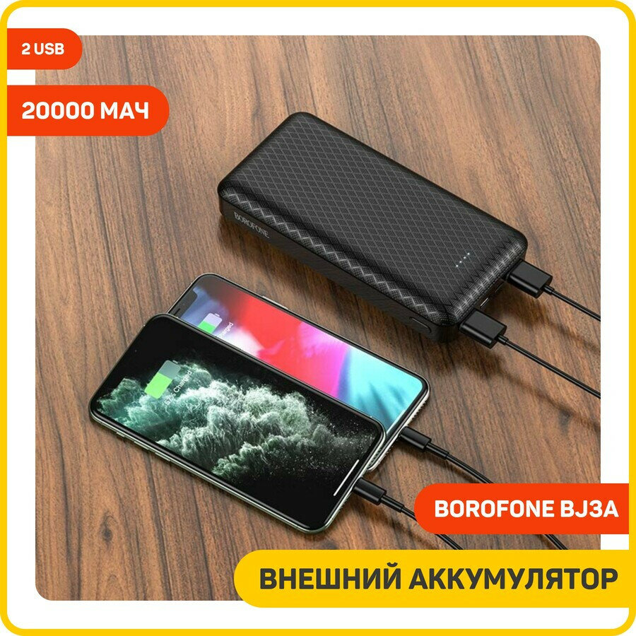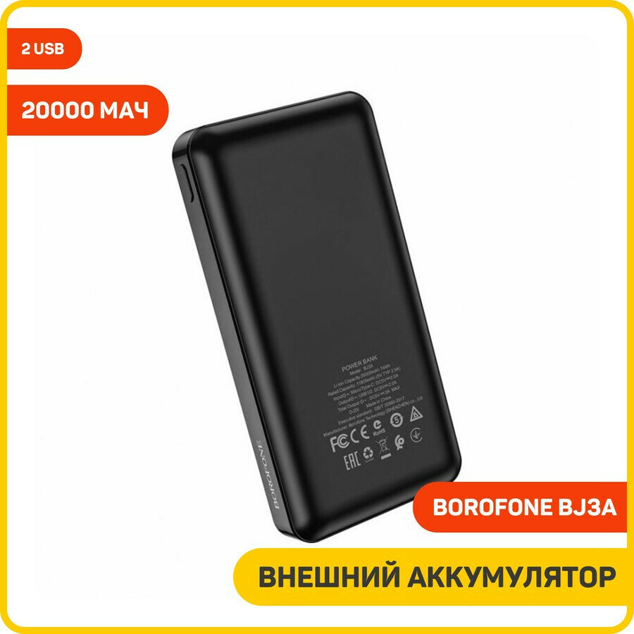 Внешний аккумулятор Borofone BJ3A, Li-Pol, 20000 мАч, 2хUSB, 2 А, чёрный