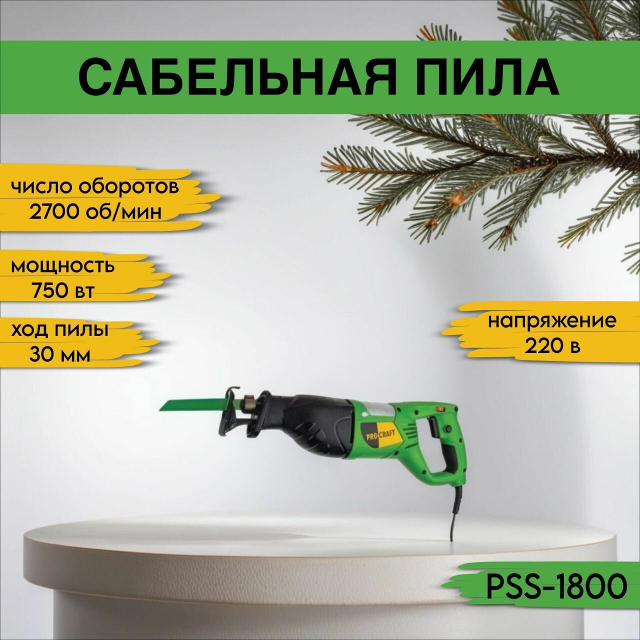 Сабельная пила ProCraft PSS 1800, 2700об/мин, 750 Вт, пропил 115мм