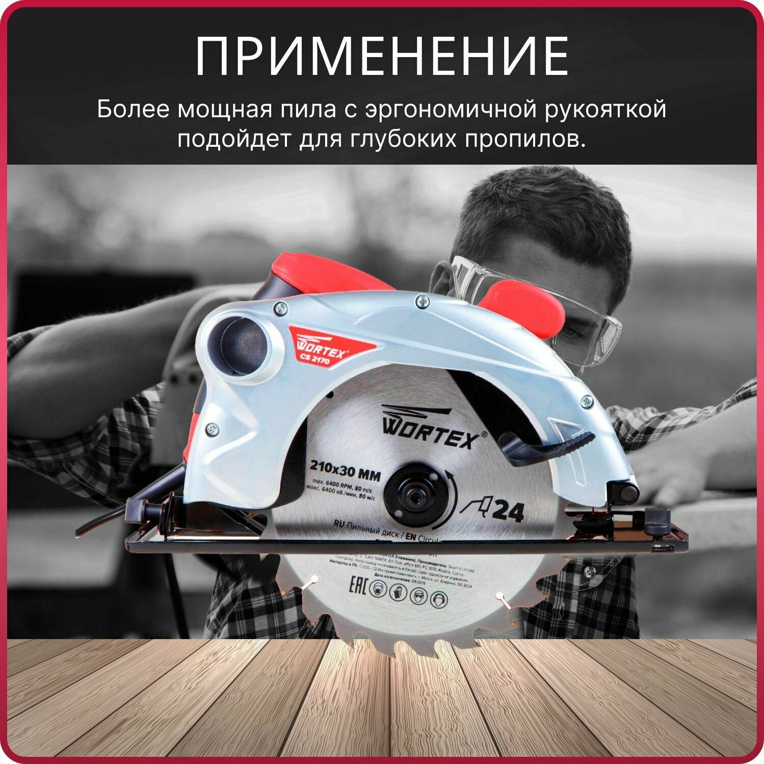 Циркулярная пила WORTEX CS 2170 в кор. (1900 Вт, 210х30 мм, до 70 мм) (CS217000011)