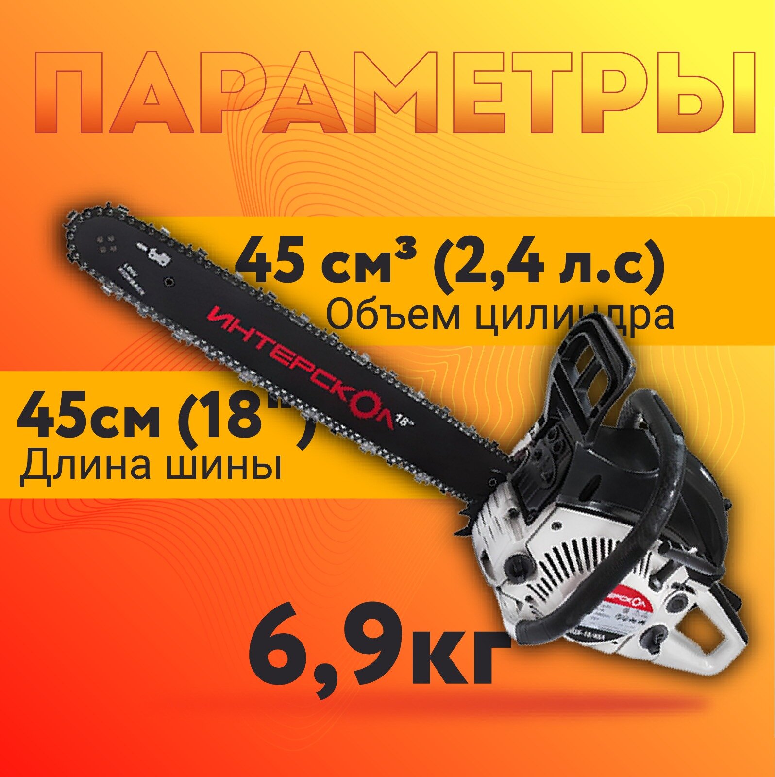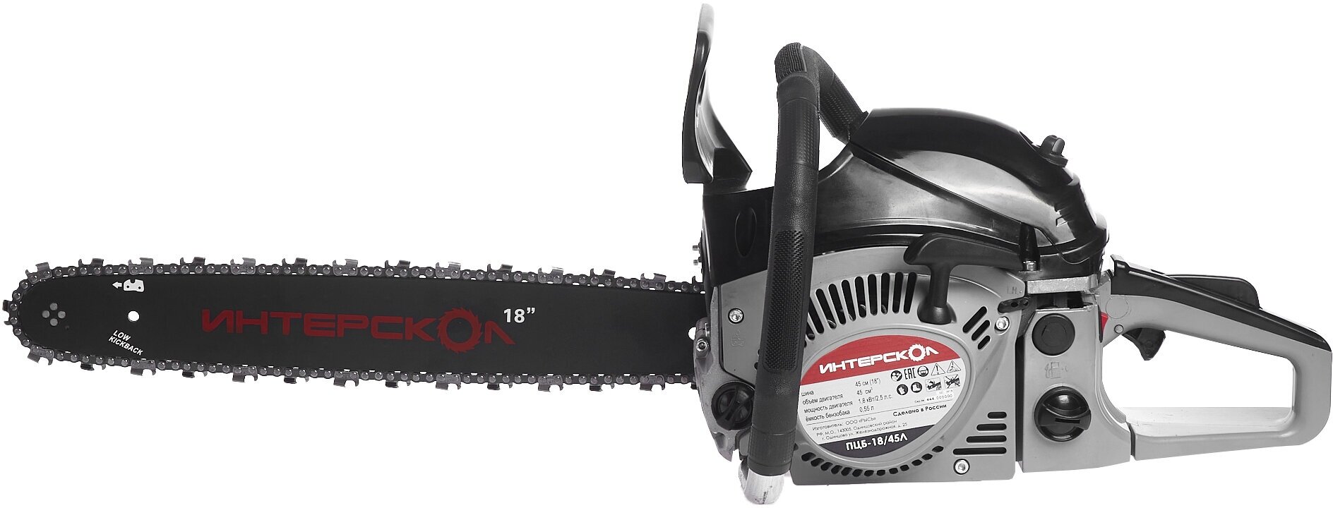 Бензопила цепная ИНТЕРСКОЛ ПЦБ-18/45Л 444.01.0.00, 450 мм (18"), 2.4 л. с, 1.8 кВт