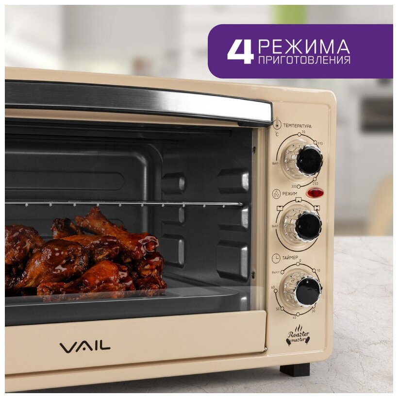 СохранитьМини-печь Vail VL-5000 (35л) цвет: бежевый . интересное: