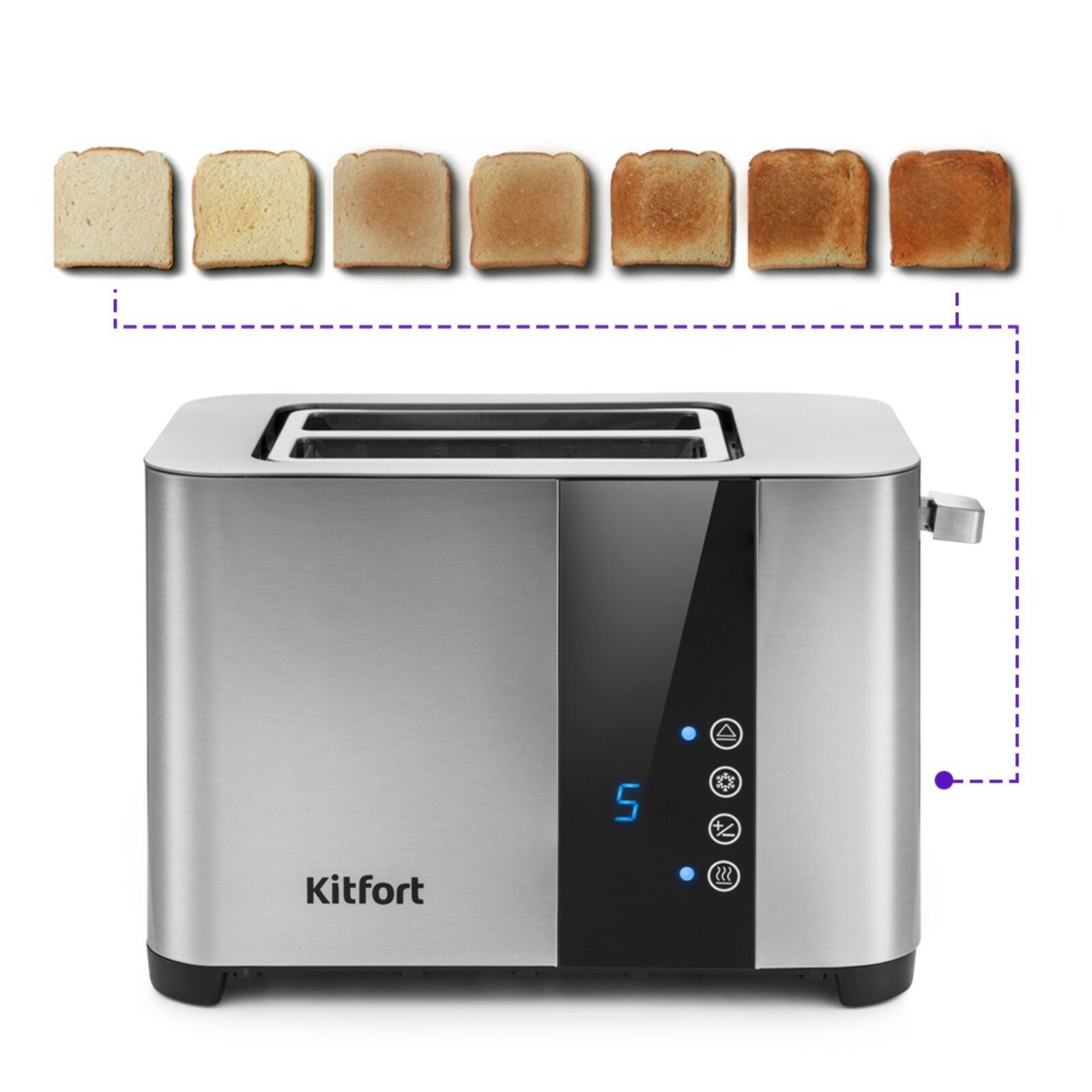 Тостер KITFORT KT-2047, 850 Вт, 2 тоста, 7 режимов, LED-дисплей, сталь, серебристый