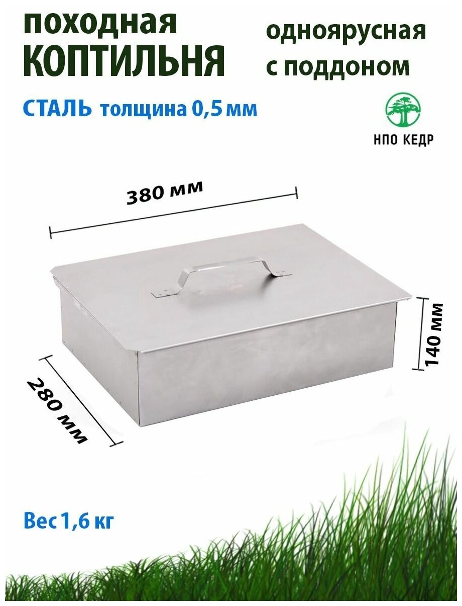 Коптильня одноярусная 380х280х140 мм с поддоном для сбора жира, сталь 0,5 мм, артикул KS1-01 интересное: