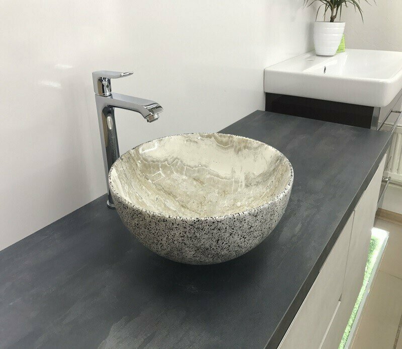 CeramaLux Раковина накладная круглая под серый камень MNC 487 CeramaLux