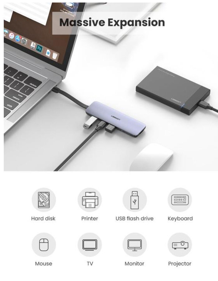 СохранитьХаб (разветвитель) Ugreen 5 в 1, USB 3.0, HDMI, PD интересное: