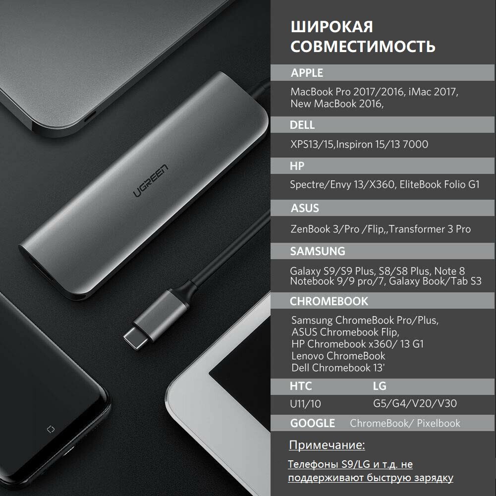 Хаб (разветвитель) Ugreen 6 в 1, 3 x USB 3.0, HDMI, USB-C, Jack 3,5 мм интересное:
