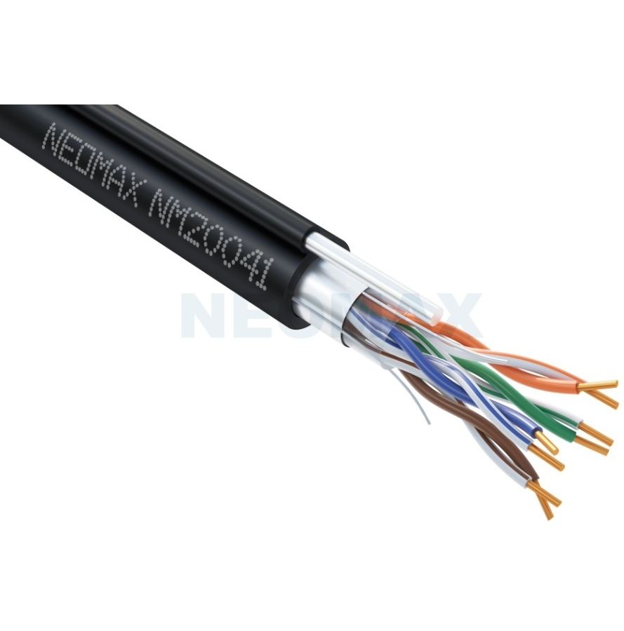 Кабель NEOMAX [NM20041] F/UTP cat.5e 4 пары (305 м) 0.52 мм (24 AWG) Медь, внешний, стальной трос 2.0мм, PE, черный