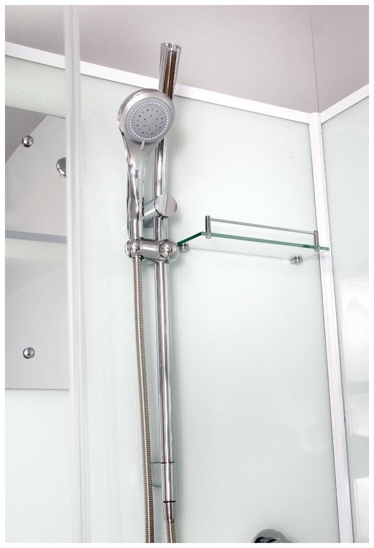 Нравятся прямоугольные формы и распашная дверь. Стекла толстые 6 мм, передние прозрачные, а задние белые. Внутри просторно и хорошо что две полки и зеркало, удобно бриться и мыться. Поддон из акрила не скользкий, высотой всего 15 см, я почему-то совсем не люблю глубокие, мне такой нравится и заходить удобней. |