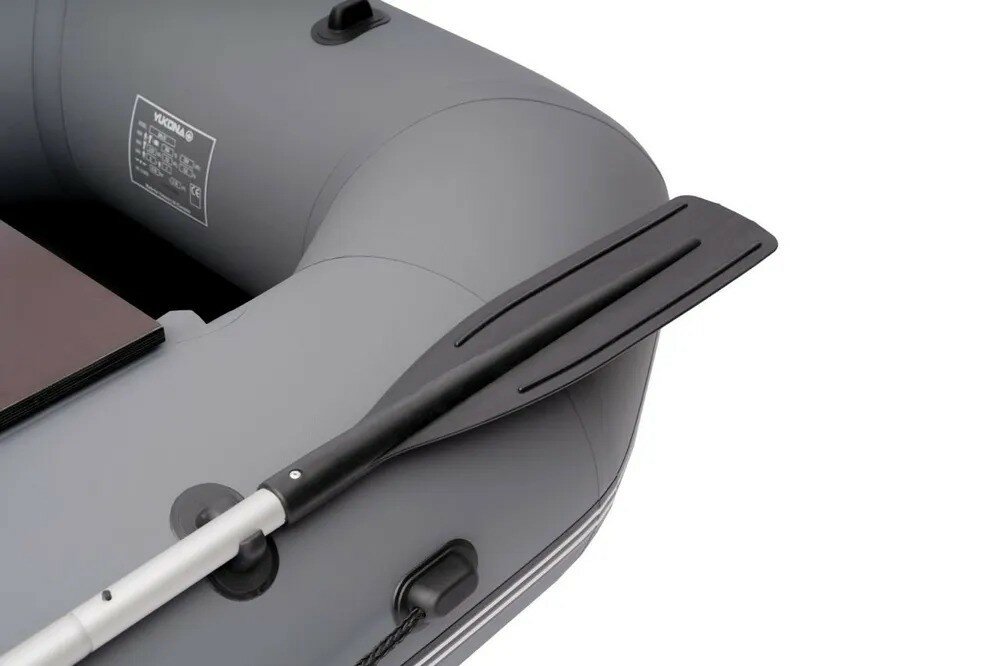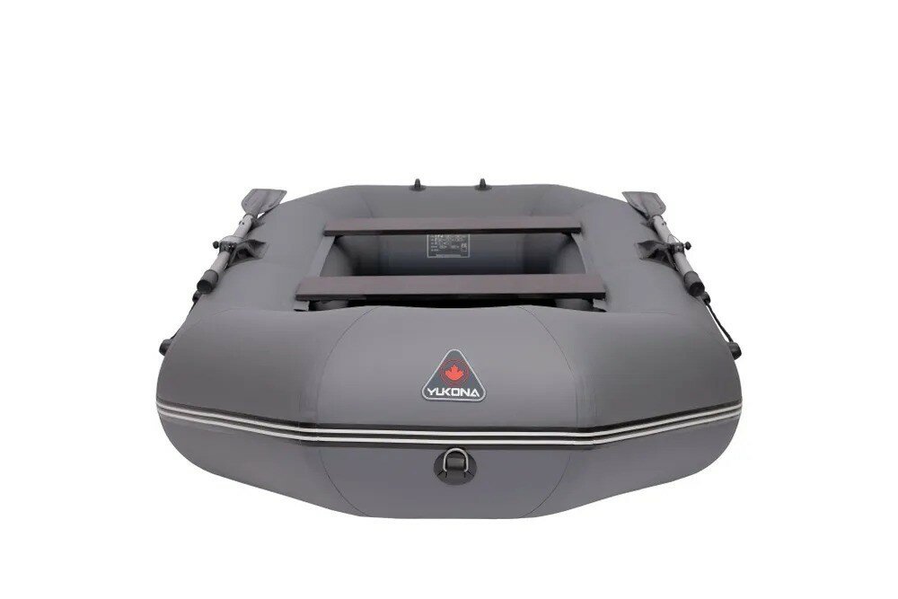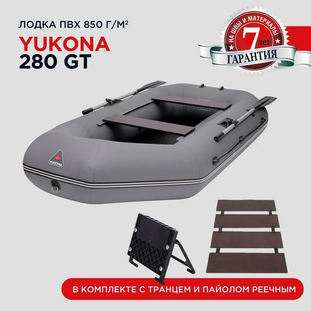 Надувная гребная лодка ПВХ YUKONA 280 GTпод мотор с реечным фанерным пайолом, серая интересное: