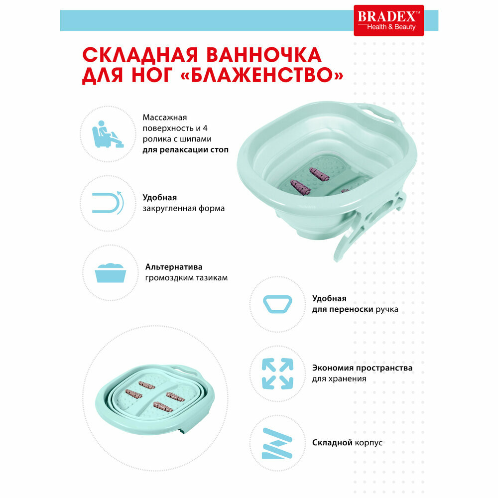 Массажная ванночка для ног Bradex KZ 0642 «Блаженство», складная, бирюзовая интересное: