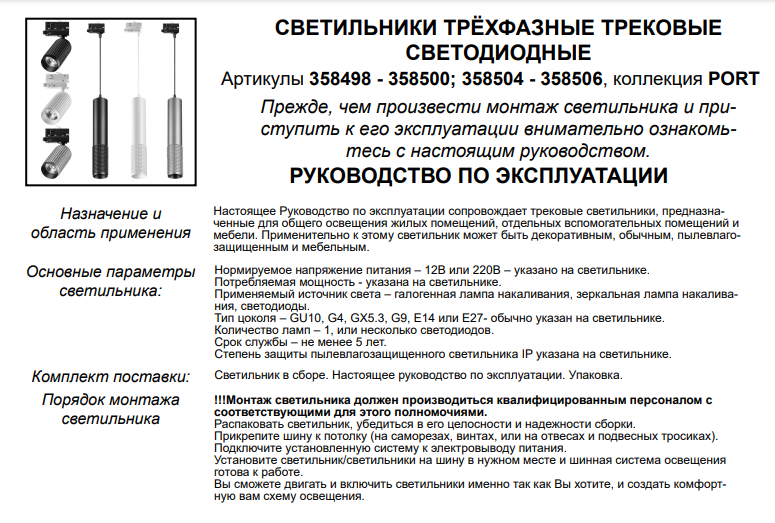 | Направление плафонов | в стороны / в стороны и вверх / в стороны и вниз / вверх / вниз / вниз и вперед / поворотные |