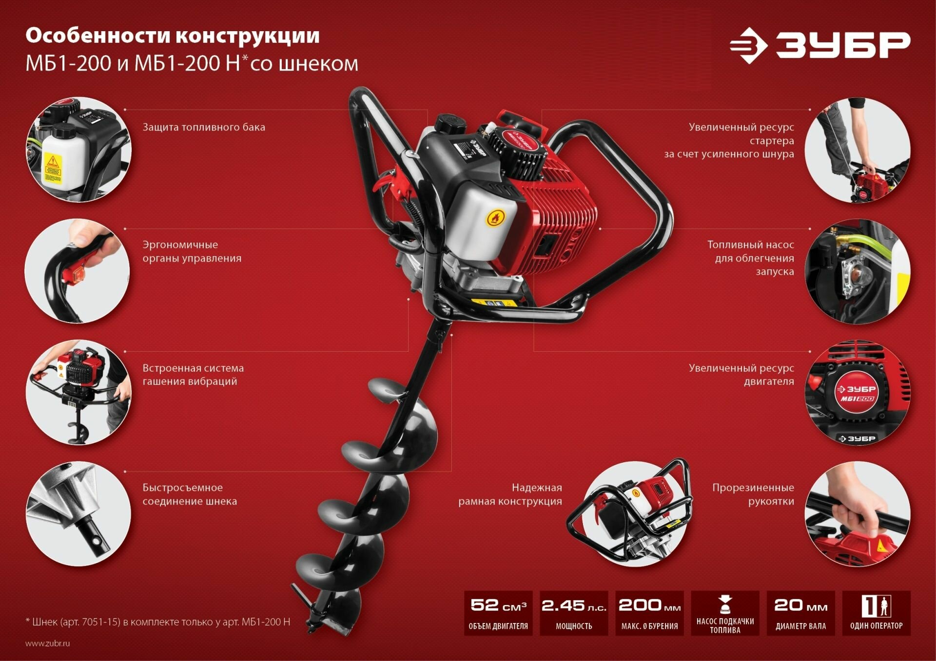 Ниже Вы можете прочитать отзывы на Зубр Мотобур (бензобур) d=60-200 мм Зубр МБ1-200, ознакомится с подробными характеристиками, посмотреть интересные обзоры и фотографии на Зубр Мотобур (бензобур) d=60-200 мм Зубр МБ1-200.
